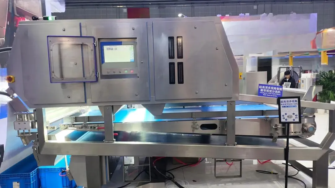 产成品分选分级板块,太易展位展示的超高清多视角智能履带光学分选机,不仅采用超清多视角成像与智能分选技术,准确剔除残次品与毛发等微杂,严格把控食品品质与外观一致性,还以高级别卫生设计、高防水防尘等级,满足食品洁净生产标准。设备应用广泛,可适用于冷冻蔬菜、冻干水果等各类型的食品。