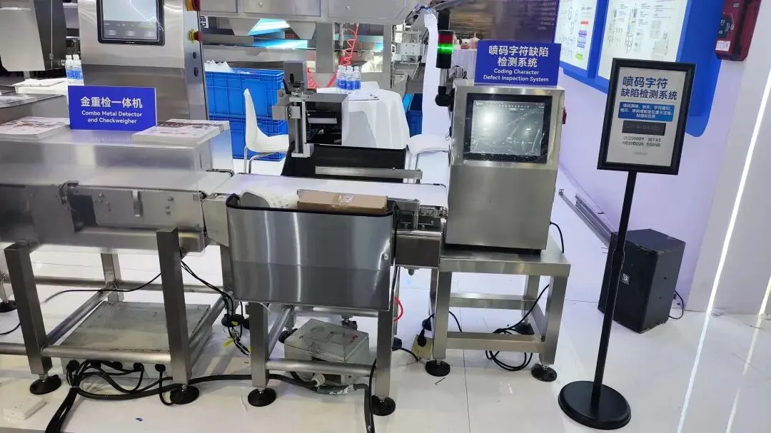 一同展示的喷码字符缺陷检测系统,结构紧凑、安装灵活,可智能识别喷码漏打、模糊、错印等问题,保障食品标签合规。