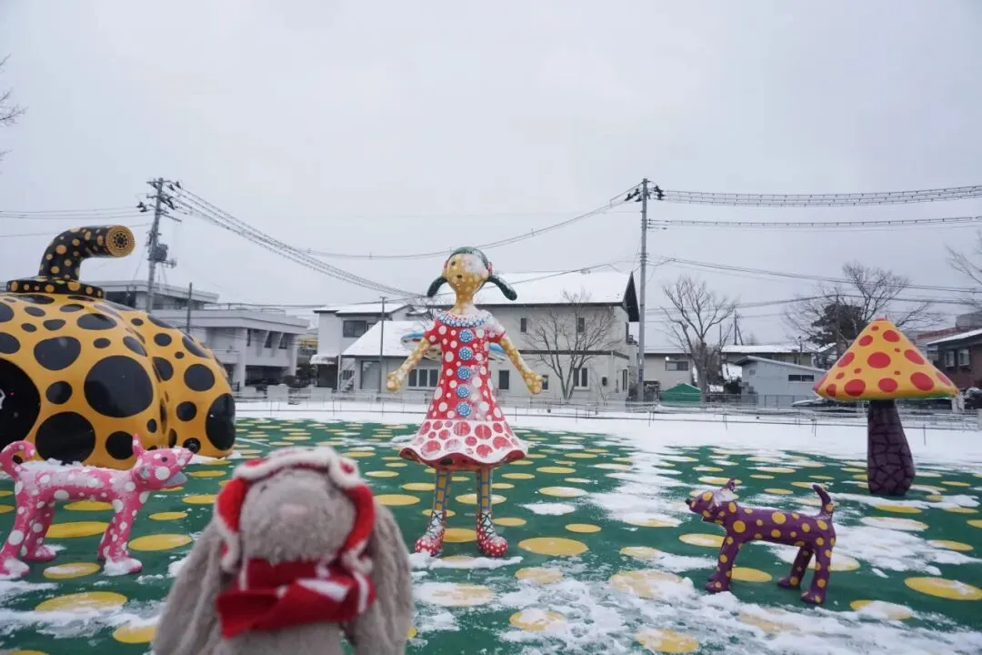 当我在回程路上翻开导览册,才发现“谜底就在谜面上”。在走进美术馆前,我看着马路对过的各个雕塑感叹建筑的辐射范围比想象中更大,而导览册介绍说实际上辐射范围更大,艺术家设计了各类花坛和公共长椅投放在市区内。这种不仅在建筑设计风格还是到展品投放方方面面贯彻将美术馆与城市街区进一步融合的理念还挺打动我的。不过也很遗憾十和田市离青森市太远,没有太多时间去探索了。