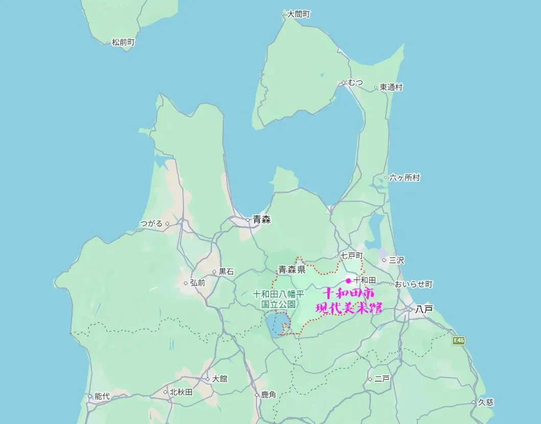 十和田市在青森县内区位 及 美术馆大致方位