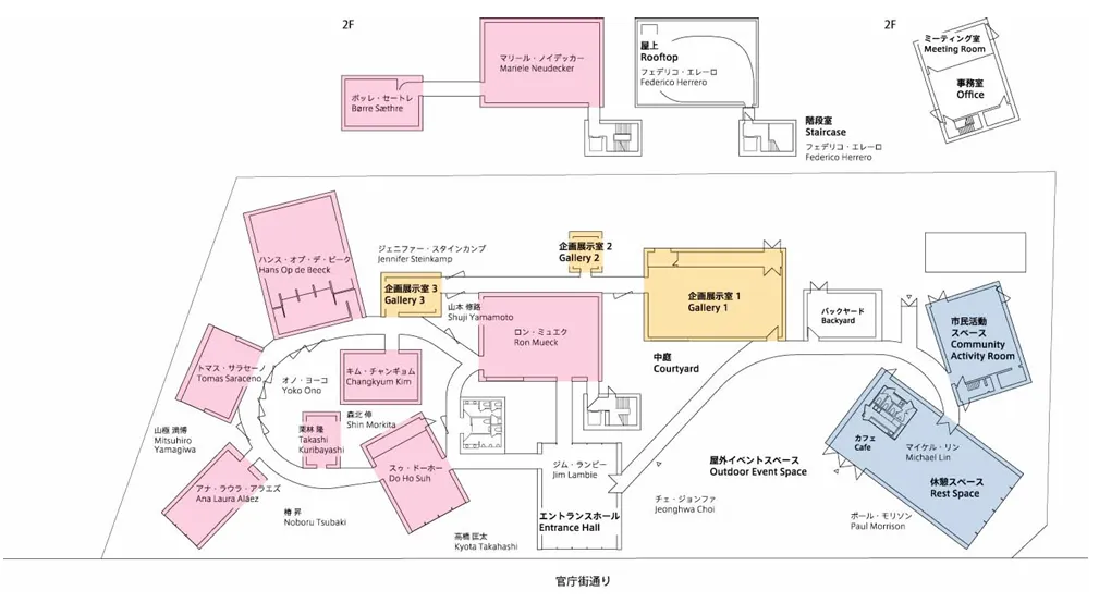 其中红色为常设展厅,黄色为特展厅,蓝色为商店公区部分 不买美术馆门票也可以购物