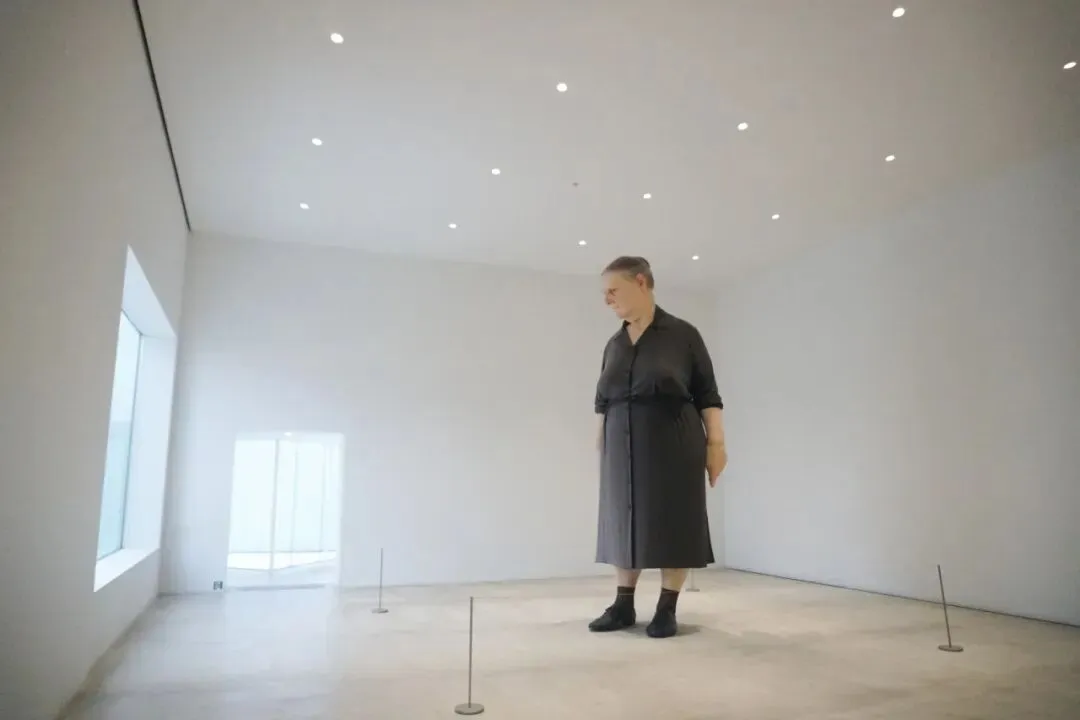 存好包买好票,往前走到第一个厅(Standing Woman),刚进去就感到整个气氛重重得落了下来——有个将近4m高的女性雕塑站着,她的头发有点花白皮肤有点岁月带来的皱纹,目光严肃锐利朝着窗外看去,整个空间都被她定住,四周无修饰只有门洞窗户倾进柔和的自然光,非常干净纯粹。