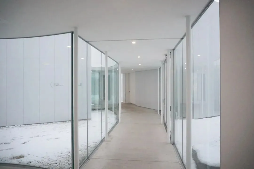 也不知道应该说是大道至简还是其他什么,这些走廊其实就是非常简单连接各个“白盒子”的玻璃廊道,往外一看,好似一眼就能看透这个建筑,直达最外面的城市街道,心理感觉真得是与城市的距离非常“薄”。