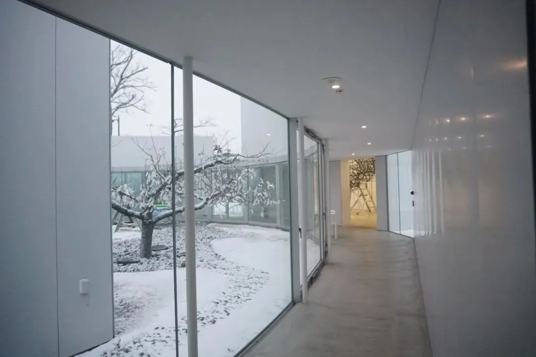 在未进门前就让我略有吃惊,因为实际上它的公共雕塑空间并不局限在美术馆一侧,还辐射到马路对过的地块,这完全是以前看案例介绍时未知的部分。同时,也正如对SANAA经典风格的想象一般,整个建筑造型非常简单,几个“白盒子”堆在一起,临街面全都是大落地窗,就算不买票都可以在街道上窥探室内展品一二。