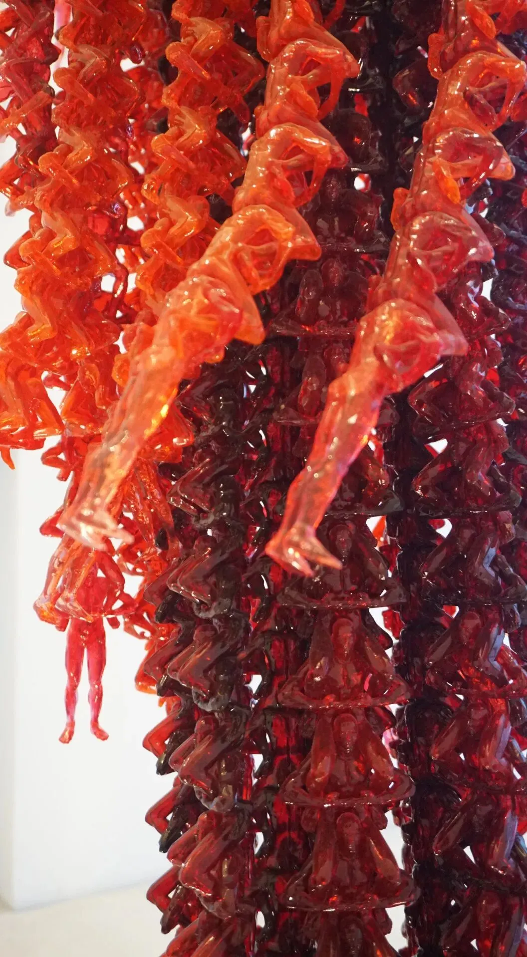 再往前就是第七展厅(Cause and Effect)也是一楼最后一个展厅,非常华丽的一个“大吊灯”,由外向内颜色一圈圈过渡,乍一看很浪漫像水母的触须,但近看却发现组成这个作品最基本的元素居然是一个个“人”,这确实有点意料之外。