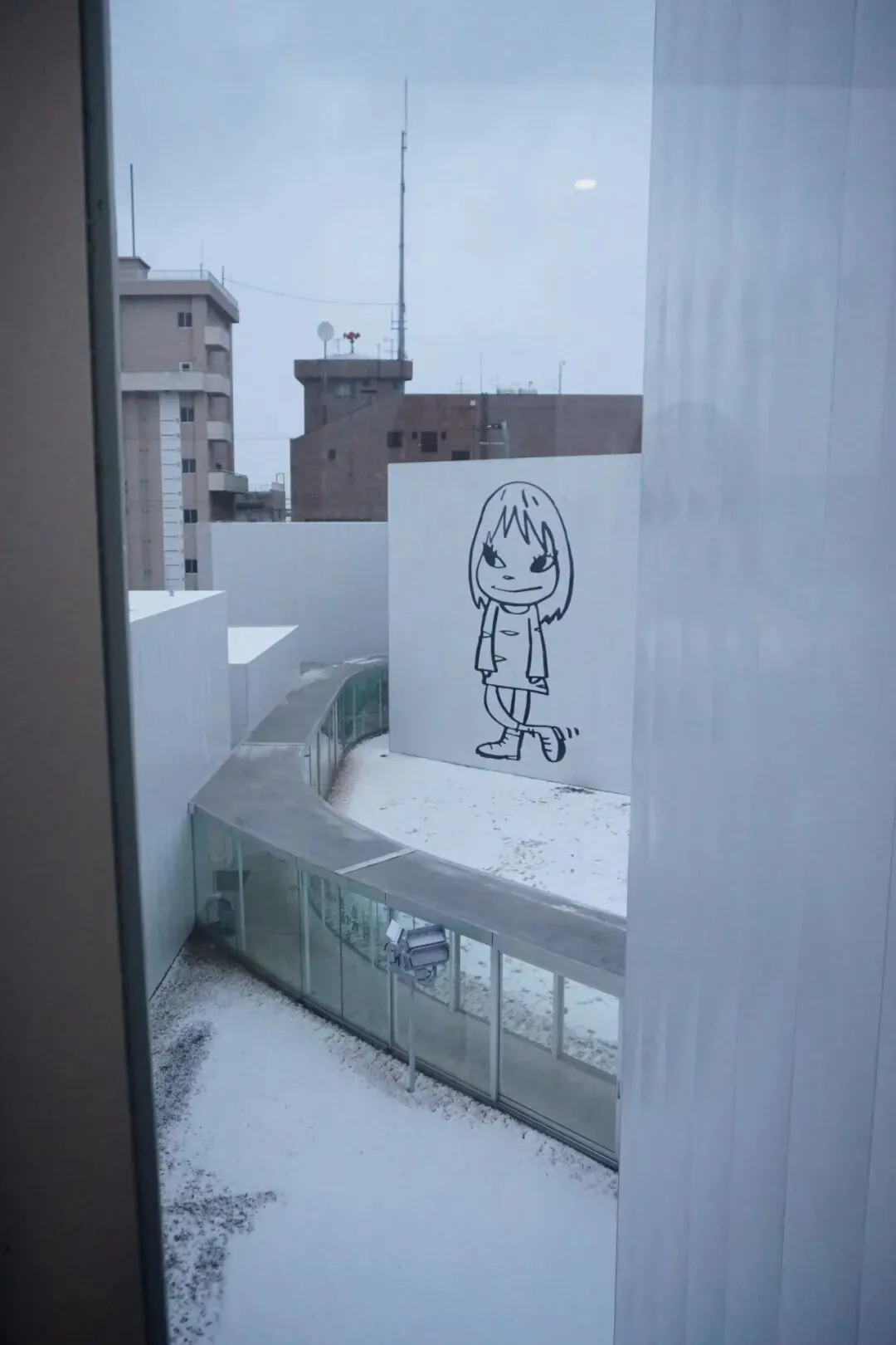 感觉美术馆的落地窗时时刻刻都会有个雕塑或者涂鸦的对景 或者是城市道路樱花树的对景