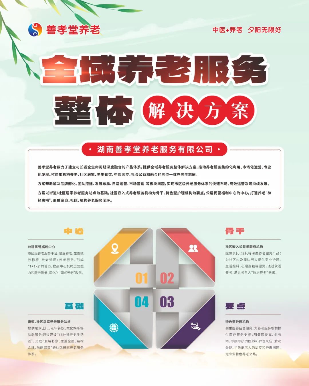 现场,善孝堂养老将“全域养老服务整体解决方案”向全国推介,引发强烈反响。全域养老服务整体解决方案致力于帮助推动养老服务集约化利用、市场化运营、专业化发展,打造集机构养老、社区居家、老年餐饮、中医医疗、社会公益相融合的五位一体养老生态圈;帮助解决品牌孵化、团队搭建、发展布局、日常运营、市场营销 等板块问题,实现市区级养老服务体系的快速布局、高效运营及可持续发展。“这个解决方案中包含哪些板块,辐射范围有多广?”“目前这个方案的落地情况如何,市场反响如何?”“医养结合在方案中的具体实施情况是怎样的?”善孝堂养老的展位吸引了来自全国各地的参展企业和参观者,大家纷纷提出自己的问题和见解。“我们是以街道/社区居家养老服务站点为基础,社区嵌入式养老服务机构为骨干,特色型护理机构为要点,公建民营福利中心为中心,打通养老“神经末梢”,形成家庭、社区、机构养老服务闭环。目前我们已经在长沙市42家社区居家养老服务站点、13家老年食堂就餐点,4家嵌入式社区养老机构、2家中医馆,2家医养结合护理机构,1家公建民营区级福利中心。开展老年助餐、社会公益、居家上门、适老化改造、辅具租赁、认知症照护、全托养老、康复护理、中医医疗等业务,全方位解决老人养老难题。”参加展会的湖南善孝堂养老服务有限公司副总经理柳毅向大家作出详细解答。作为第一个家政行业专属博览会,第一个直接聚焦民生痛点的博览会,第一个行业内外大联动的博览会,首届全国家政博览会汇聚领导和专家,邀请主流平台媒体,配套多场主题活动,可谓亮点十足。以奋斗为基准,以平实为心态,坚持服务本质、坚守发展初心,善孝堂将迎着风口,奋力向前,立足长沙,让“中医+养老”的服务模式往外延伸,点亮“中国式养老”的发展版图。