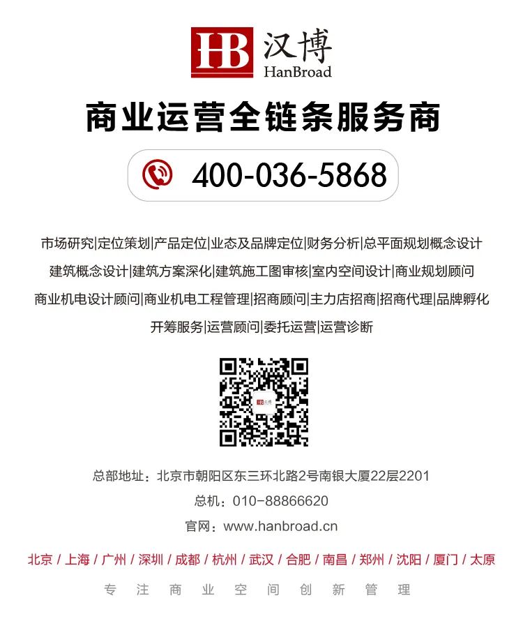 汉博商业集团成立于2005年,是国内最早一批提供商业管理专业服务的公司之一,专注商业空间创新管理十八年。起步北京,布局全国,成立十余年来,围绕市场变化,汉博商业集团的定位不断升级,已从原有的顾问公司升级为商业运营全链条服务商,打通了商业管理全产业链,可为各阶段、各类型商业项目提供策划咨询、建筑设计、规划咨询、招商管理、运营管理等五大模块标准化业务,可提供全产业链全生命周期系统运营解决方案,并拥有“之心城”、“漫乐城”和“美里天地”三大自有品牌产品线,提供定制化输出管理。