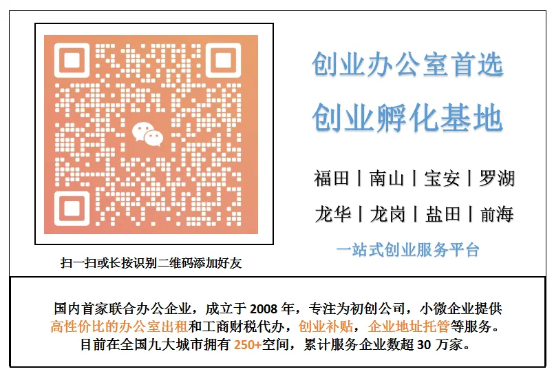 深圳7大区分点,福田,南山,宝安,罗湖,龙华,龙岗,盐田,90+商务中心,办公室出租,地址挂靠,创业补贴,红本租赁凭证,会议室/培训室出租等。
