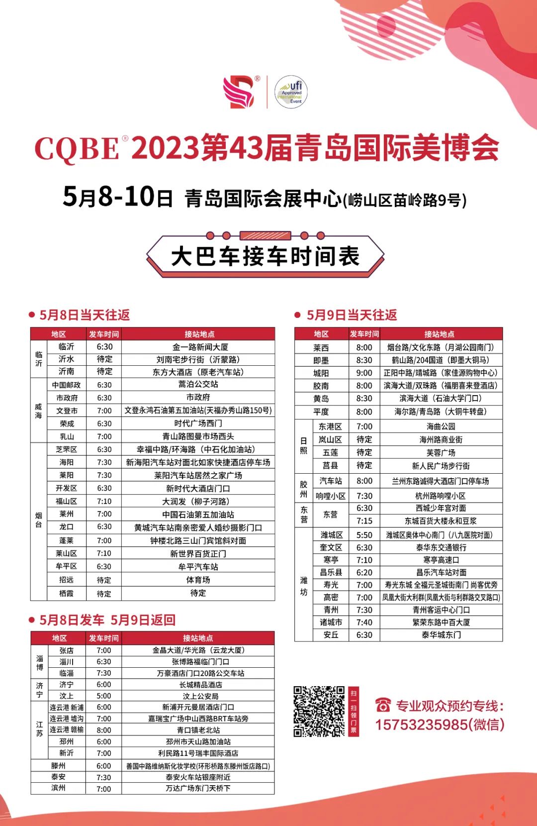 2023第43届济南国际美博会观众服务依然不放松,为专业买家提供大巴车免费接送、现场搭建观众休息区、预约享好礼等多重福利,来自多地的专业买家乘坐大巴车抵达现场,实现一站式的快捷选品,与参展企业达成全方位、多层次的商贸合作。