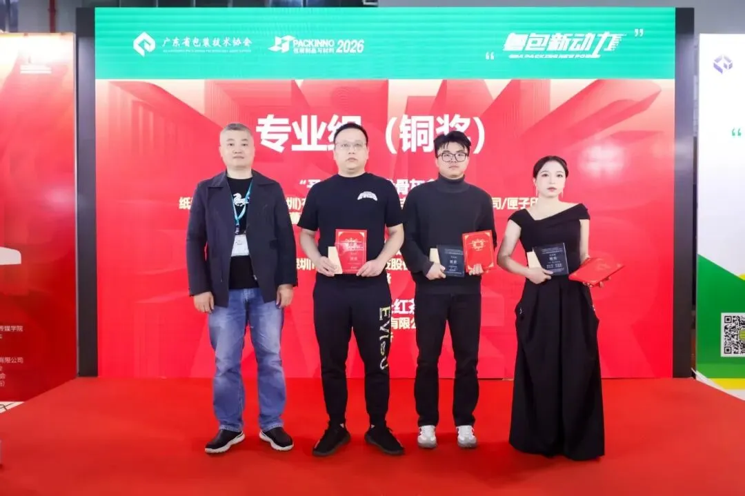 在热烈的掌声中,获奖者依次登台领奖。每一件获奖作品都凝聚着设计师对纸材的深刻理解与创新探索——有的将岭南文化元素巧妙融入纸包装,有的以极简结构实现功能突破,有的在环保可降解材料应用上做出有益尝试。颁奖嘉宾与获奖者合影留念,记录下这一荣耀时刻。