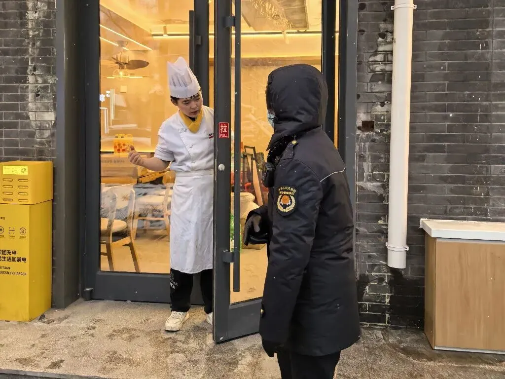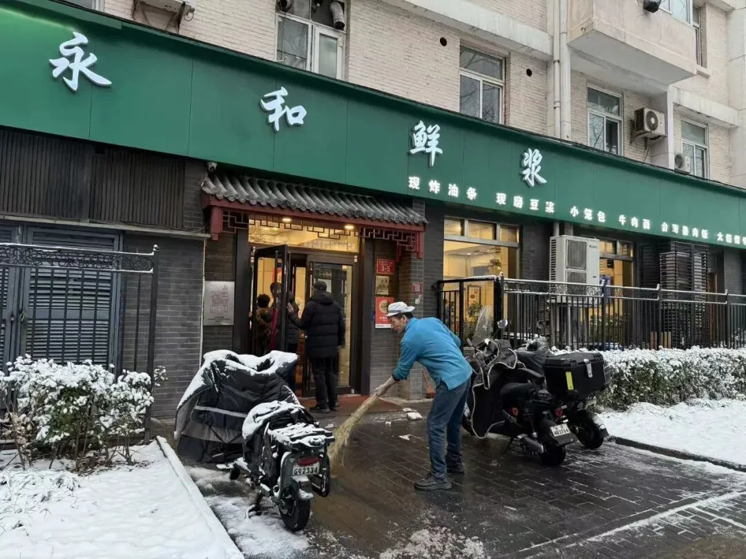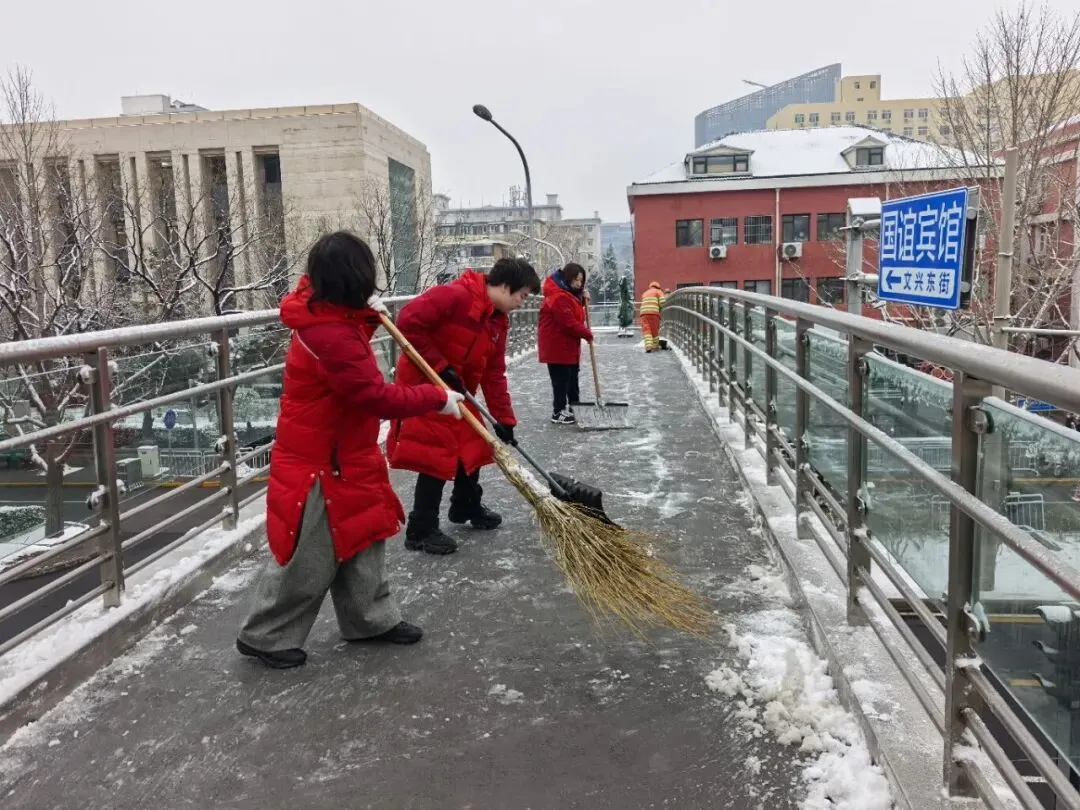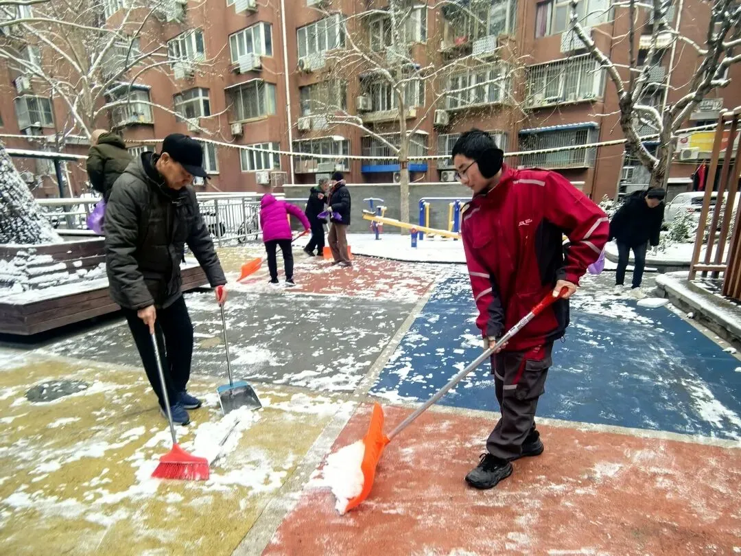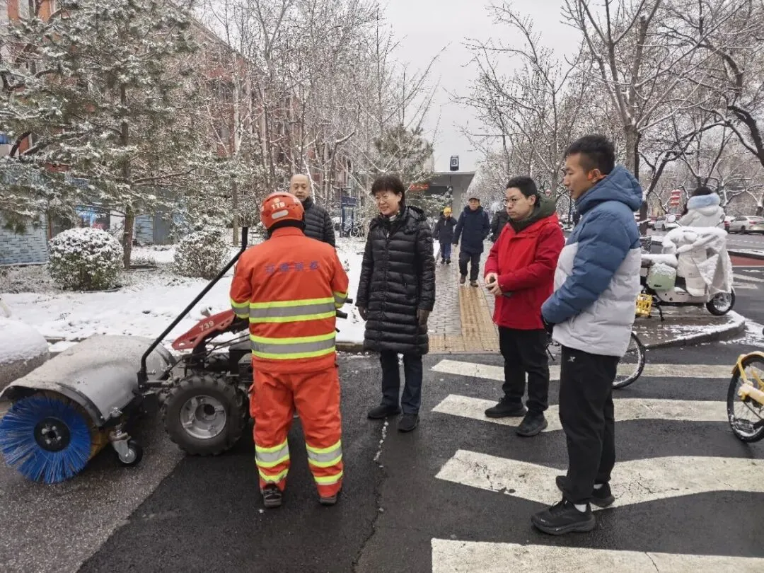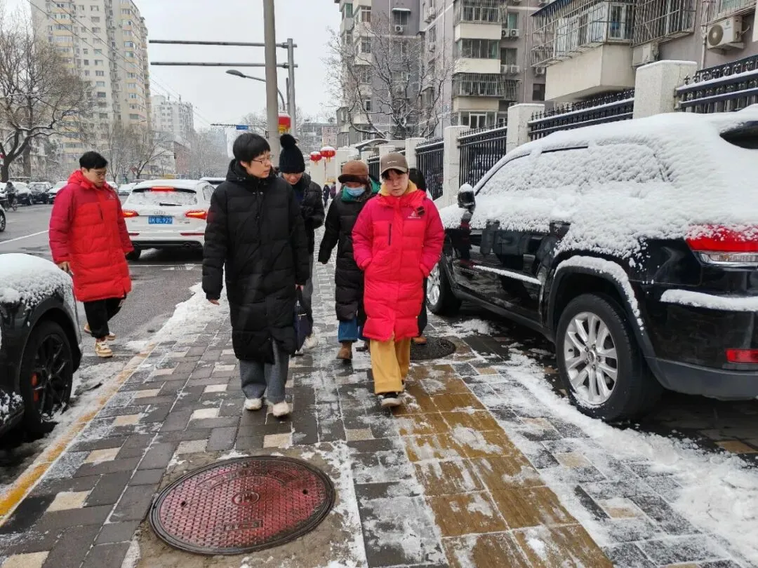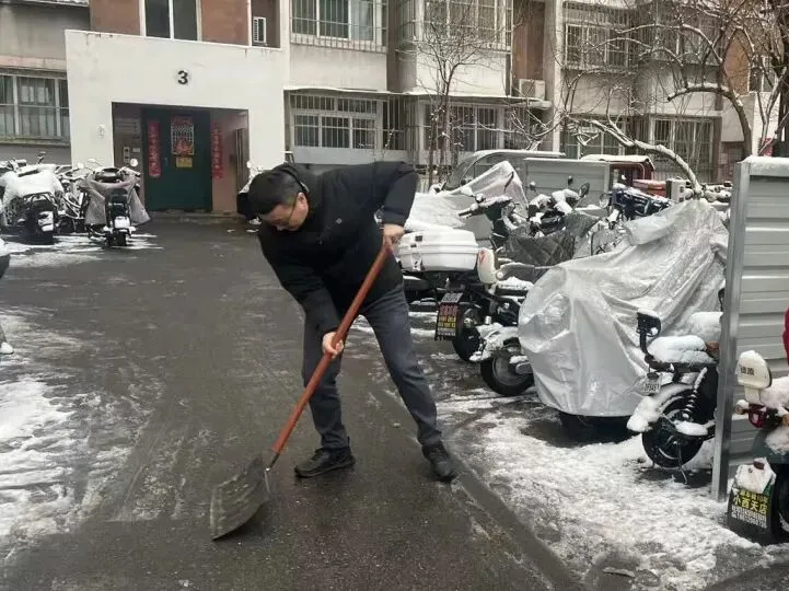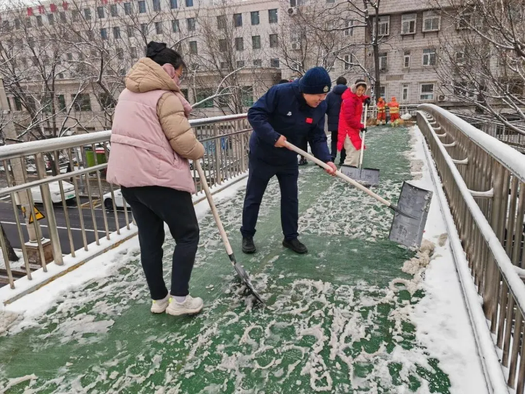 街道处级领导深入各社区,与辖区党员干部、居民群众一同投入保障工作,用行动“融化”冰雪,践行志愿担当。社区工作者身着“志愿红”,用温暖服务抵挡风雪的严寒;地区单位、沿街商户积极践行“门前三包”,不仅“自扫门前雪”,还协助背街小巷、平房院落清除“他人瓦上霜”;还有快递小哥放下手头的工作,参与到扫雪铲冰的行动中来,“为了让街坊邻里出行更安全,我们不怕麻烦和辛苦!”一抹抹志愿红汇聚成最温暖的守护力量,让雷锋精神在风雪中熠熠生辉。