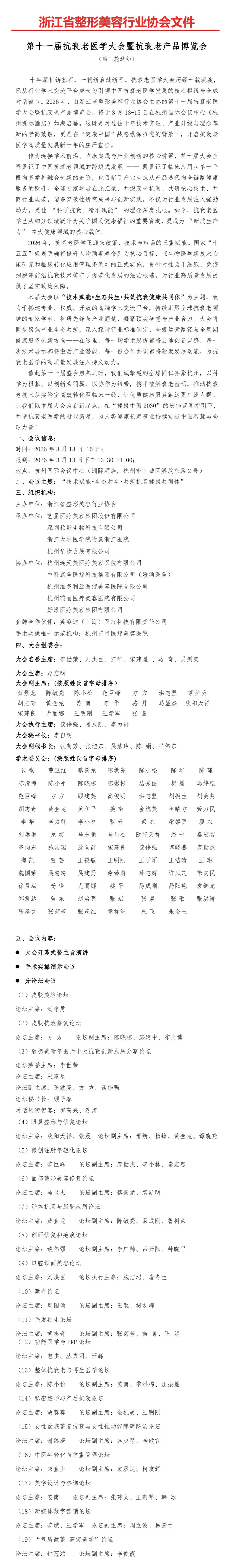 浙江省整形美容行业协会(缩写ZJAPA,以下简称协会)成立于2017年5月19日,是由浙江省注册的并开展和从事整形与美容医学临床、教学、科研等医疗机构和相关单位自愿结成的全省性、行业性、非营利性的省一级社会团体组织,依据《社会团体登记管理条例》依法登记注册,具有独立法人资格。目前有激光美容、皮肤美容、鼻整形、美容外科、微创美容、疤痕整形、整形修复与重建、面部年轻化与形体管理、麻醉与镇静镇痛、口腔美容、脂肪整形、护理、抗衰老、女性生殖整复、眼整形与美容、中西医结合美容、医美创新与转化、乳房整形美容、互联网医疗美容、中医皮肤美容分会20个二级分会。