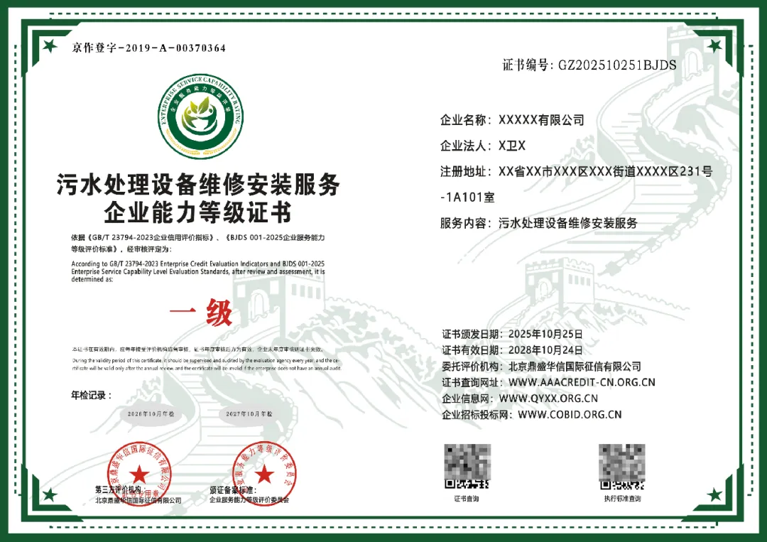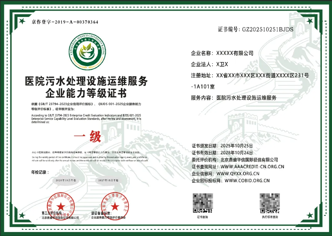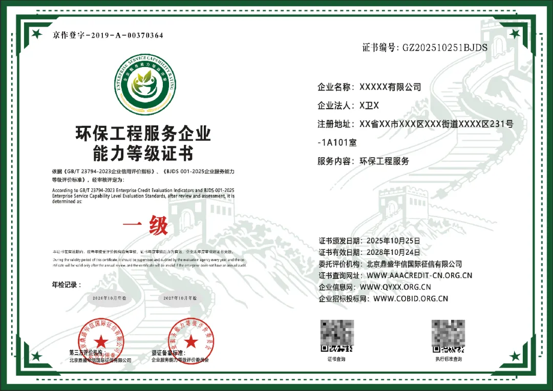 强化合规运营,符合国家及地方生态环境治理相关政策要求,健全企业运营管理体系。 提升专业能力,体现企业在工艺技术、设备配置、人员结构、安全管理、应急处置等方面的综合实力。 增强市场信任,为政府项目、市政工程、工业园区、商业综合体等合作场景提供权威能力证明。 助力市场拓展,在招投标、合作洽谈、品牌建设中形成差异化优势,推动企业持续健康发展。