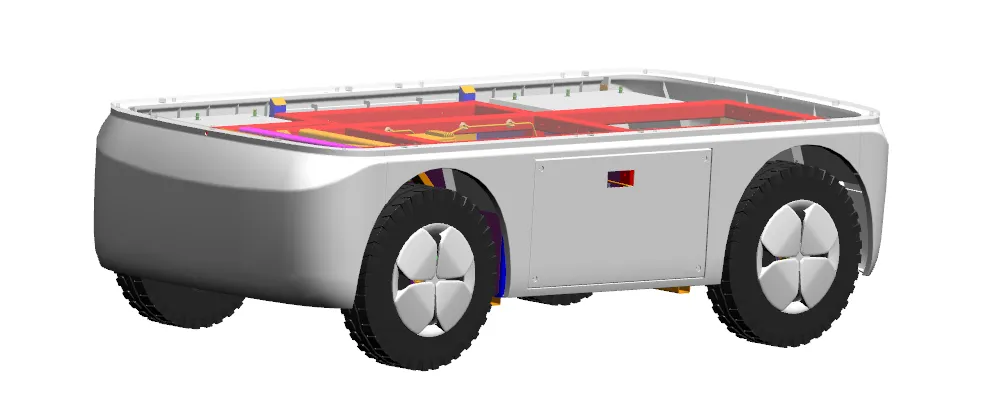 国内首款专用底盘:解决充电机器人“窄车身、大重量、高重心”技术难题;