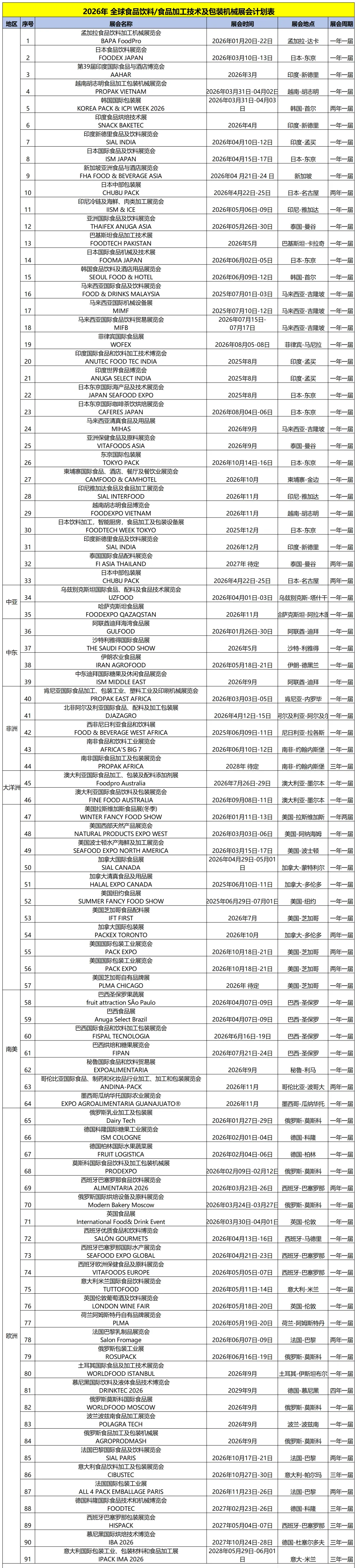 食品加工技术-包装机械展会计划表