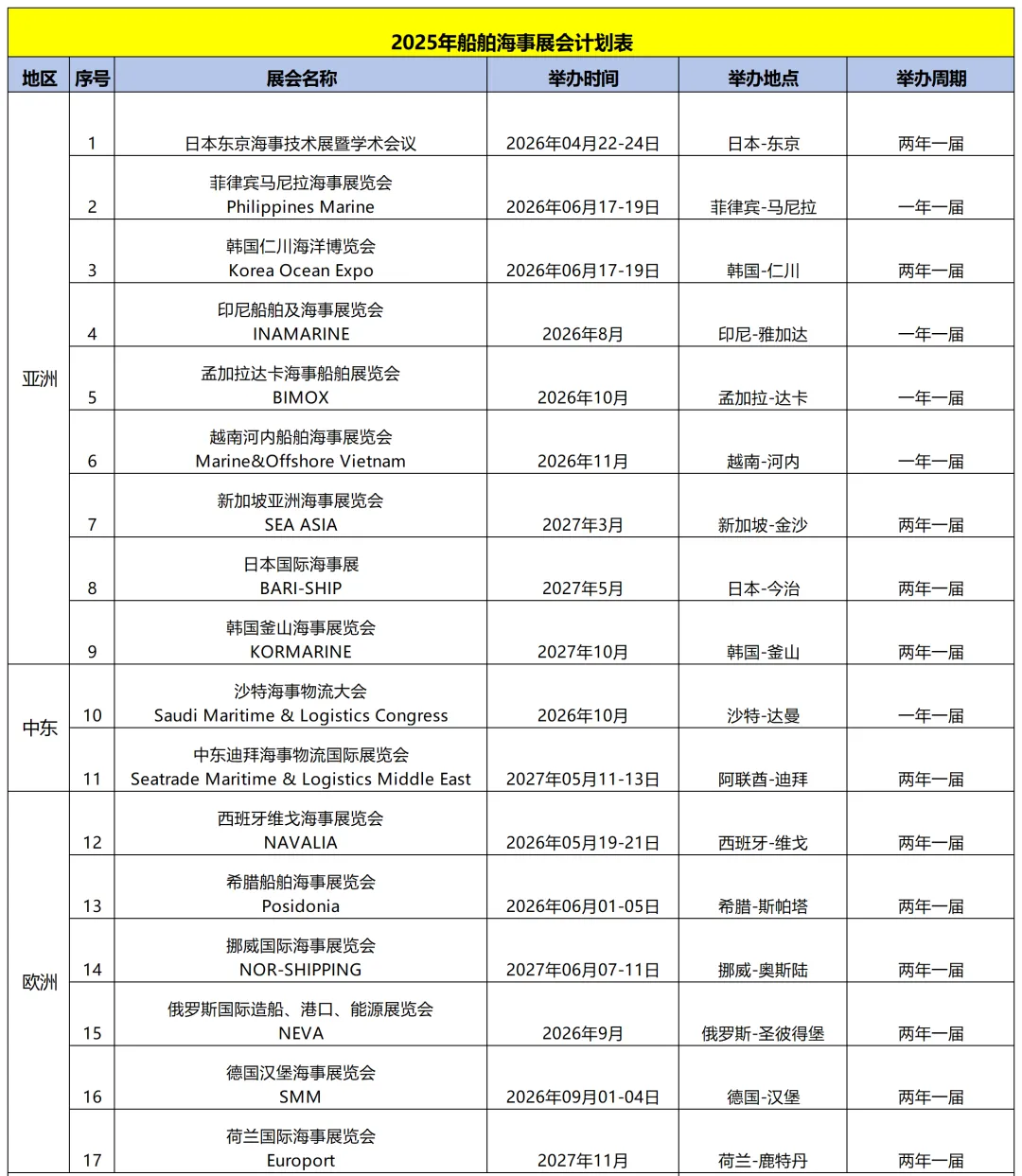 2026年全球物流展会计划表