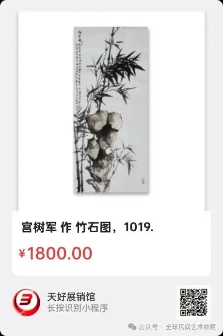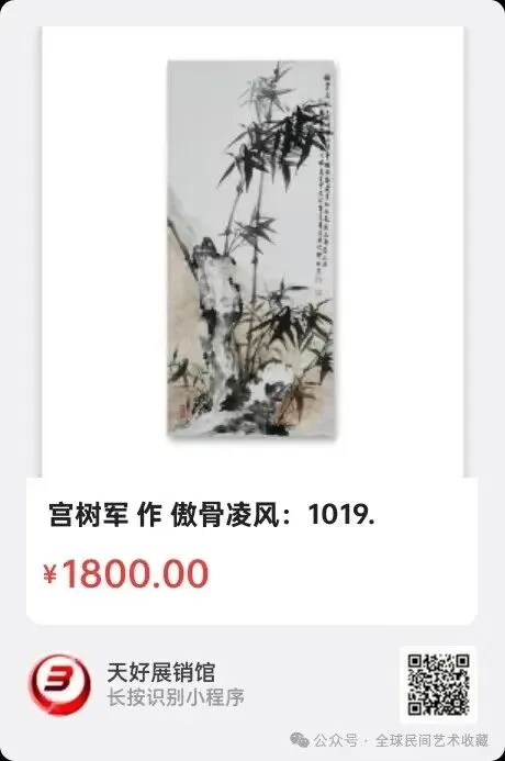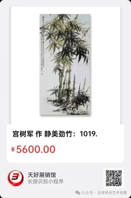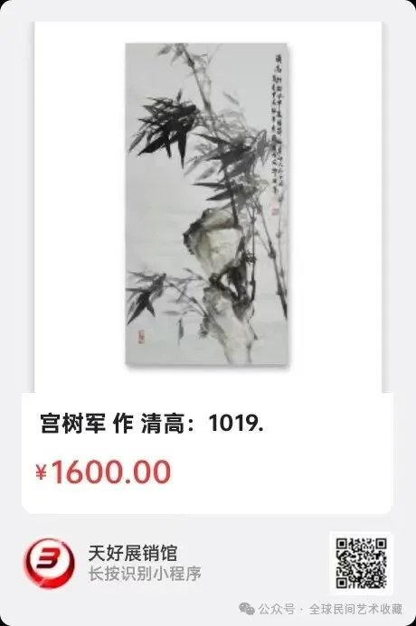 宫树军:汉族、1970年出生,河北省衡水市人,木艺师。师从徐悲鸿门下韦江凡弟子王相文先生。自幼学习探索郑板桥老师传统国画水墨竹。徐悲鸿美术教育示范基地。博鳌亚洲艺术人才研究中心研究员。中国香港国际艺术家协会会员。世界艺术家联合总会理事会副会长。现为北京中采集团《世纪采风》书画院副院长、中央电视台《藏宝天下栏目组》签约画家。中国教育电视台《水墨丹青栏目》签约画家,水墨丹青书画院副院长。中国东方文化研究会美育工作研究委员会客座教授。中国管理科学研究院商学院客座教授。河北省电视台公共频道《文化之旅栏目组》签约画家。人民美术出版社签约艺术家。中国炎黄书画院执行院长。中国书画院特聘书画家。北京胡润国际艺术品鉴定中心特聘书画家。上海宫蓓蕾国际书画院国画艺术委员会高级顾问。国际书画艺术家联合会签约艺术家。中国人物界新闻网特聘顾问。中国人民艺术网艺术顾问。中国书画家联谊会新文艺群体工作委员会委员。国礼艺术网顾问。国宝级艺术大师。中国楹联学会会员。国家高级美术师、一级美术师、衡水市美术协会会员。全国名人书画艺术界联合会委员、衡水市地毯工艺美术设计师、勾针设计师,职业画家。作品2018年被中国国际报告文学研究会国学文化传承委员会入编《大道之行》,2019年被中国文化进万家编委会收入《中国书画艺术年鉴》。2020年收入(1949—2019)中国书画家大百科。2020年7月16日受邀荣登企业家日报。2020年荣获十三届全国人大三次会议、全国政协十三届三次会议,全国两会胜利召开"向人民汇报.向两会献礼"活动官方重点推荐人民艺术家荣誉称号。2020年在全国抗疫情国画作品邀请展中入展作品《竹报平安》获得特等奖。2021年7月受邀参加中央电视台第二十一届世纪大采风智慧中国栏目组年度盛典,并获得当代著名画家杰出人物奖。2021、2022、2023、2024、2025年受邀入编《中国功勋艺术家》《大国艺术传世名家》《百年巨匠》《百年巨献.百年大家》《当代书画家全书》《中国近现代通史》《世界里的中国》《世界艺术巨匠大辞典》等等书刊。擅长画传统国画水墨竹。2021年被评为中国非遗领军人物。2021年作品为弘扬中国传统文化艺术被入选《传承经典.时代标杆》。2022年积极助力北京冬奥会,被中国新媒体组委会、一带一路文化旅游促进会《特别推荐艺术家》。2022年世界看冬奥.国家重点推荐艺术家。还荣登纽约时代广场《世界第一屏》。并多次参加国内外拍卖,雅昌网有查。