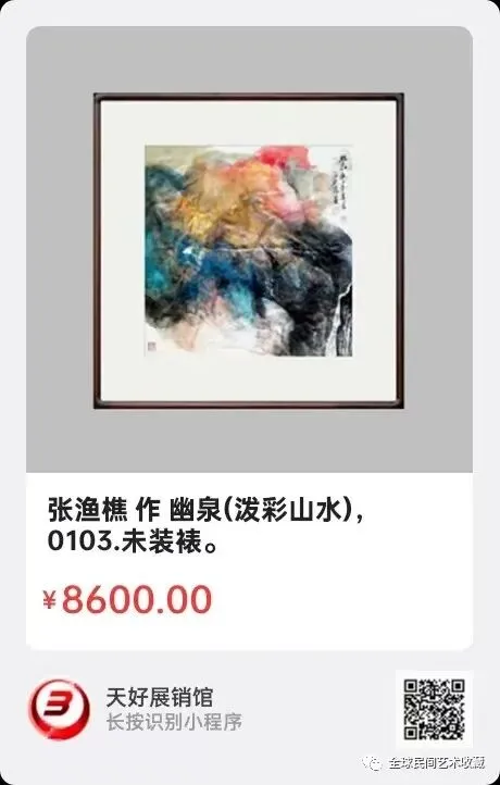 张渔樵 作 幽泉(泼彩山水),尺寸:69x69cm,2020年,未装裱。0103. V.