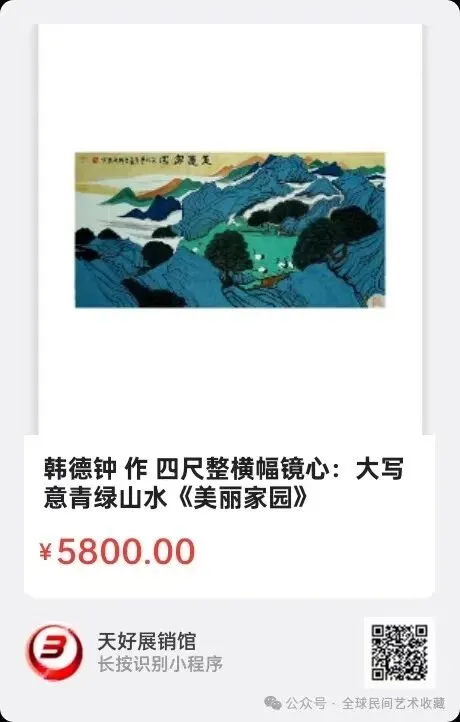 韩德钟 作 四尺整横幅镜心:大写意青绿山水《美丽家园》规格尺寸:138X68㎝,材质:生宣原片。创作时间:2025年。来源0569.V.