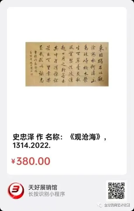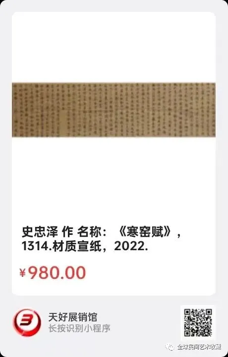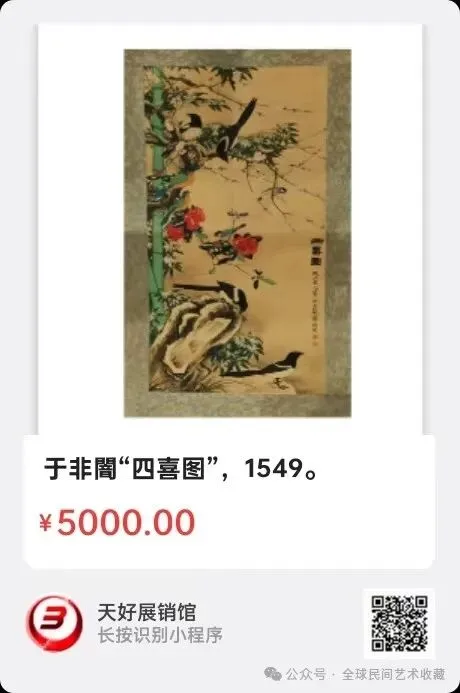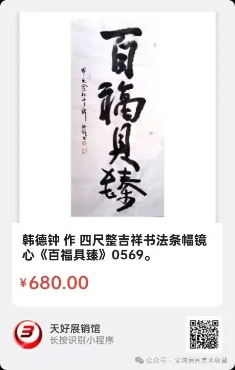 网络展销地址:《全球民间艺术收藏》《天好文化》,《天好展销馆》前二个微信公众号每期发布展讯,进《天好展销馆》购买。