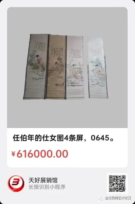 任伯年的仕女图4条屏,单张长76,宽30公分,4条屏。来源:0645。