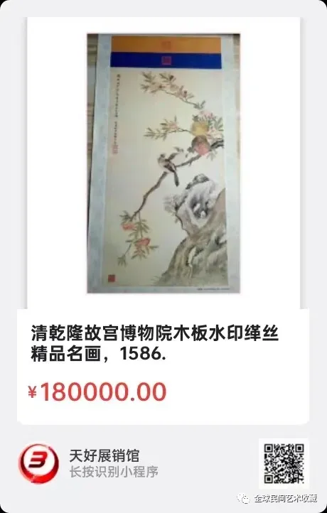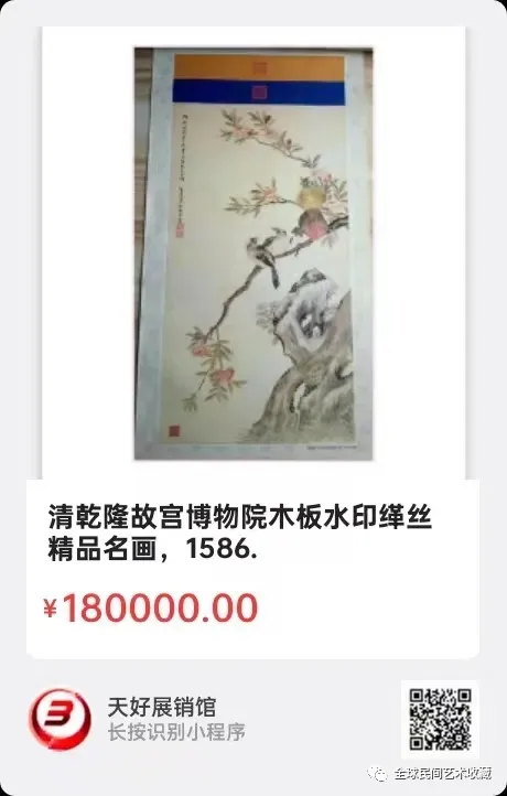 清乾隆故宫博物院木板水印缂丝精品名画,尺寸35X70公分,来源1586.