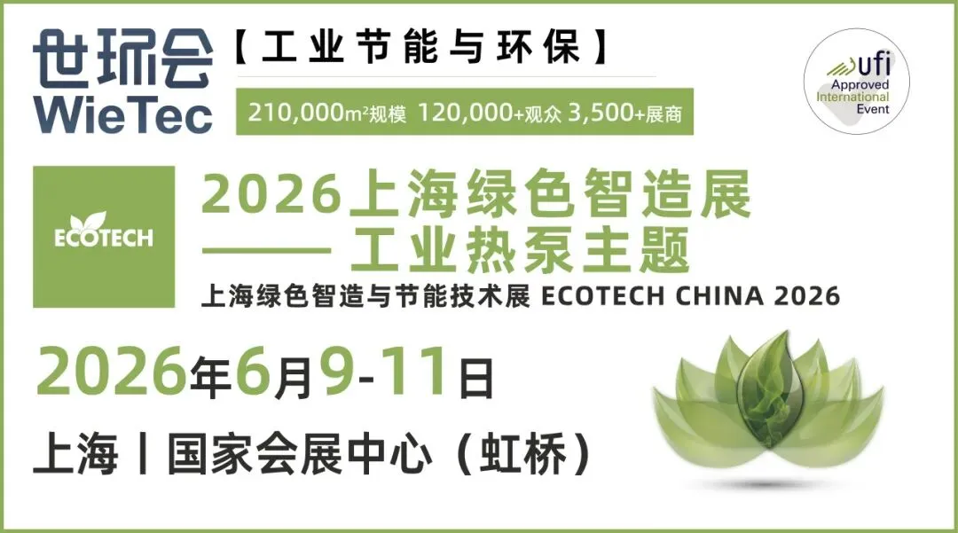为系统梳理行业创新成果,树立技术应用标杆,推动先进产品与解决方案的规模化应用,2026世环会工业热泵展将携手权威机构与行业专家,于2026年6月9-11日在上海国家会展中心,展期同期举办“智享热泵新科技·绿筑工业新未来——2026工业热泵展优秀产品评选”。