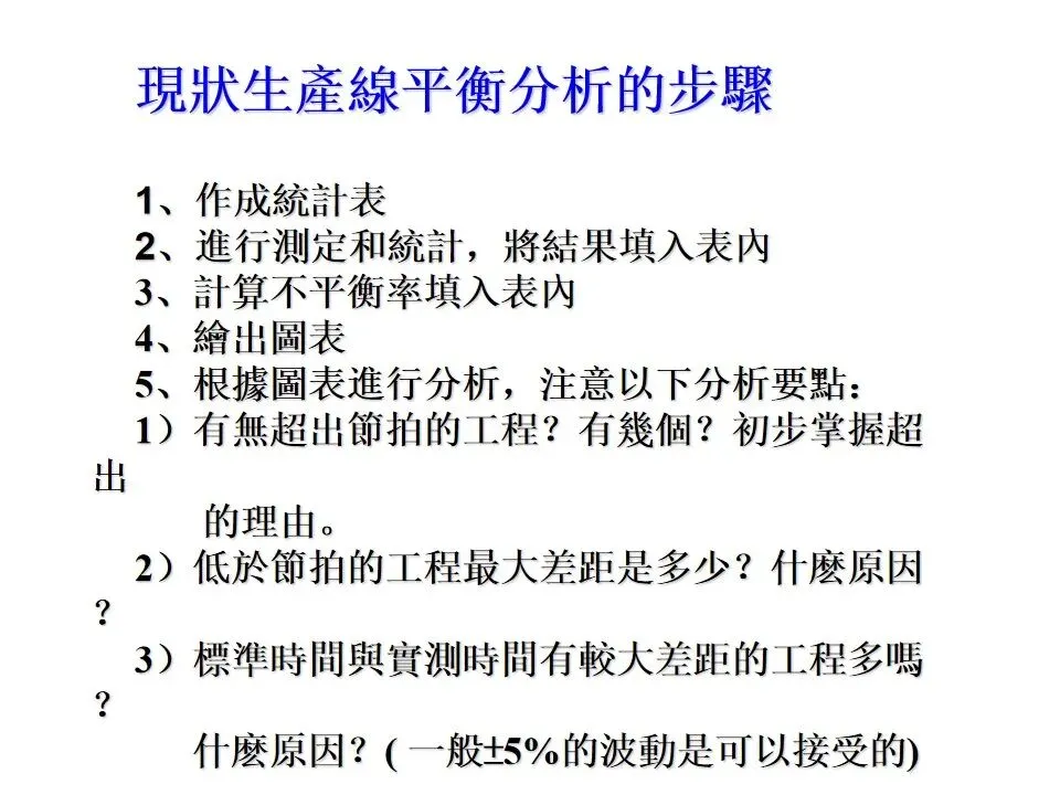 本文系统介绍了生产线平衡的核心概念、分析方法与改善工具,围绕瓶颈识别、节拍计算、平衡率与不平衡率的评估展开,旨在提高生产效率、缩短周期、消除浪费。内容涵盖了时间测量、动作分析、程序改善、山积表应用等IE手法,并结合ECRS原则(取消、合并、重排、简化)提供了系统的改善路径。通过七个实施步骤(从数据收集、浪费识别、方法研究到效果确认与标准化),强调生产线平衡在提升产能、稳定质量、优化作业秩序中的关键作用,具有较强的实操指导意义。