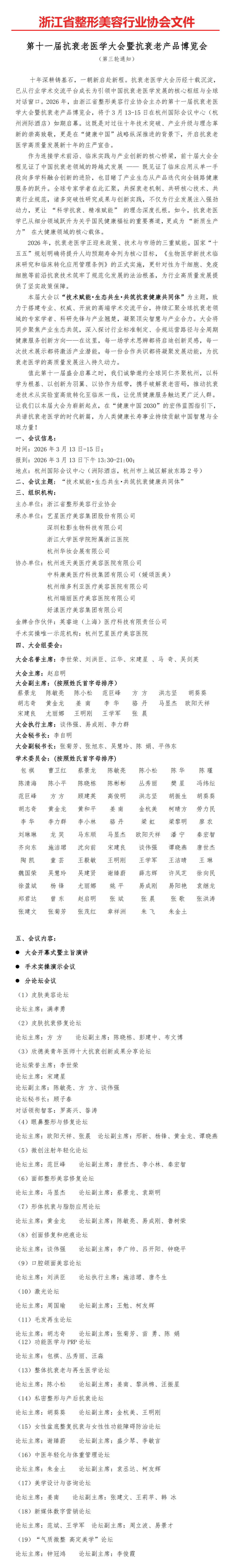 第十一届抗衰老医学大会暨抗衰老产品博览会 -- 第三轮通知