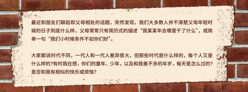 由此,我们确立了这个展览的主题——代际对话。相较于单向度去倾听一代人的故事,不同代际的对话更有意义。这是所有人都能谈论的话题,聊聊自己与上一代、下一代的相处。希望由这个展览开启的对话可以发生在父母与孩子、长辈和年轻人以及任何代与代之间。