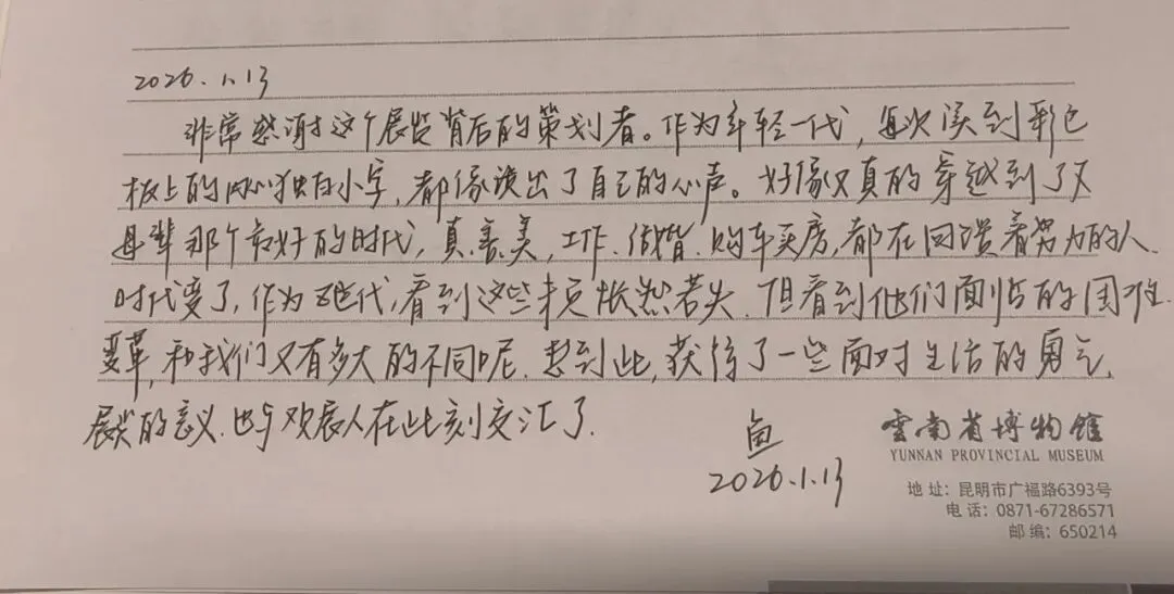 我认为此次展览在叙事与技术层面回应了新博物馆学的诸多核心议题。其更重要的价值在于,通过社会学、人类学等方法进行在地化知识生产,对抗了博物馆同质化趋势,形成了鲜明的地方表达。展览还体现了博物馆对当代社会议题的持续关注与介入,这种将“博物馆伦理”纳入实践的系列化探索,或可引导博物馆在本地语境下逐步发展成为一种推动社会发展的“moral agency”(道德主体)。希望后续可以有更多好展览让我们持续地看到云博对于社会关注带来的“道德力量”和持续从不同视角去阐释昆明乃至云南的这样一些特质。