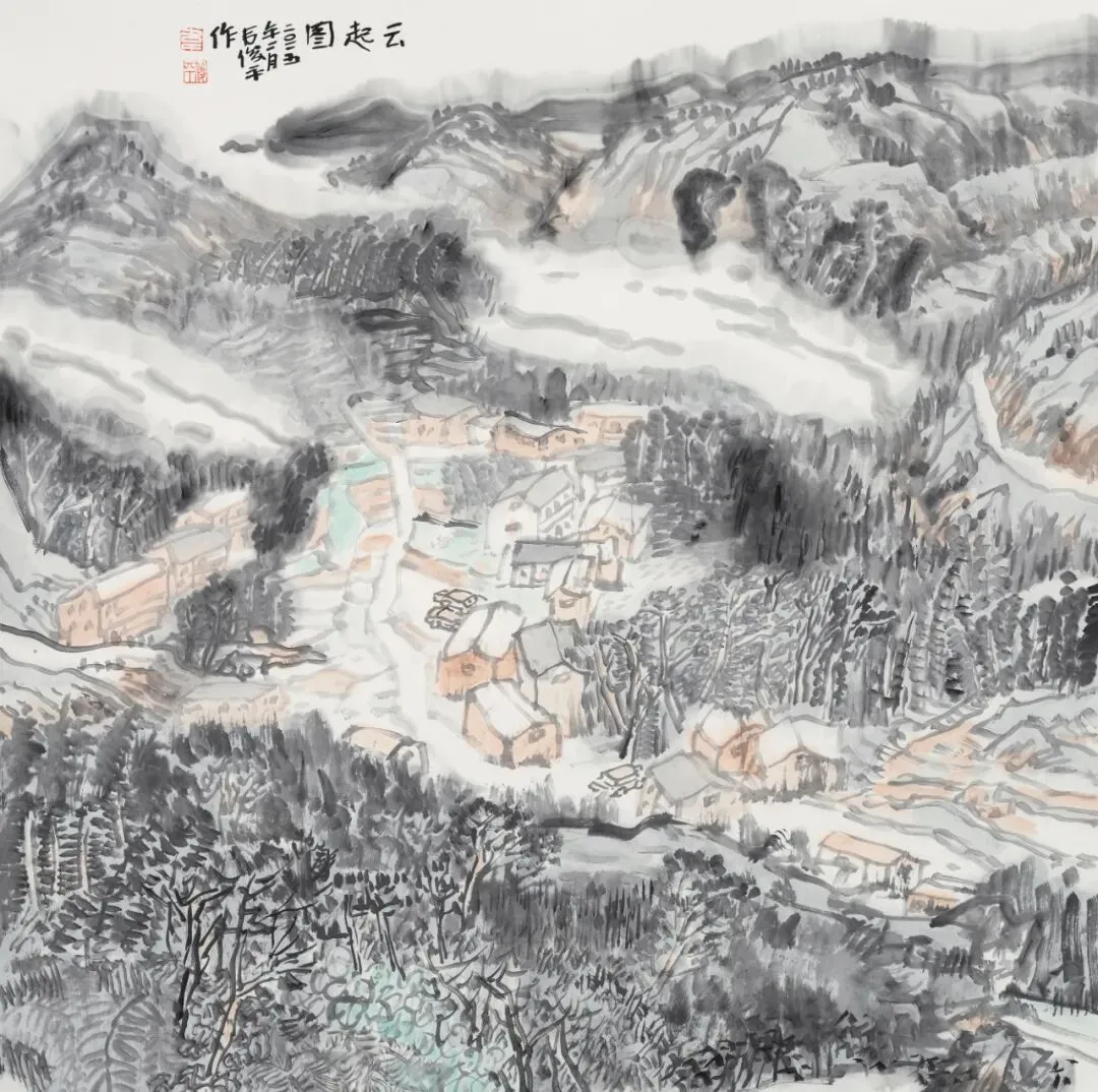 由此,读韦俊平的作品,我们不仅能见到南方的山水之形,悟到“墨彩相融”的现代中国画新路径的草蛇灰线,更触抚到搜尽奇峰总乡情的感受和一颗赤诚之心,会意到韦俊平“画熟悉的、感动我的”艺术宣言,以及无数与我们内心息息相关的故乡之思、抒情之诗。