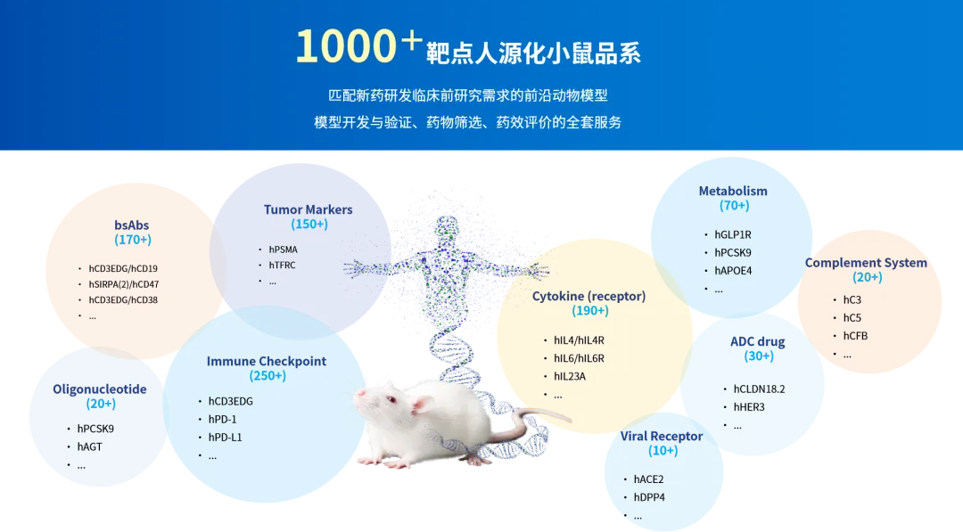 在炎症自免疾病模型体系基础上,为提升临床前研究的转化价值,南模生物进一步整合了覆盖靶点人源化、免疫系统人源化的的多种前沿小鼠模型,应用于各类自免疾病药物研发,支持双特异性抗体、JAK抑制剂、细胞疗法等疗法的临床前评估,实现从“模拟疾病”到“模拟患者”的平台能力跨越。