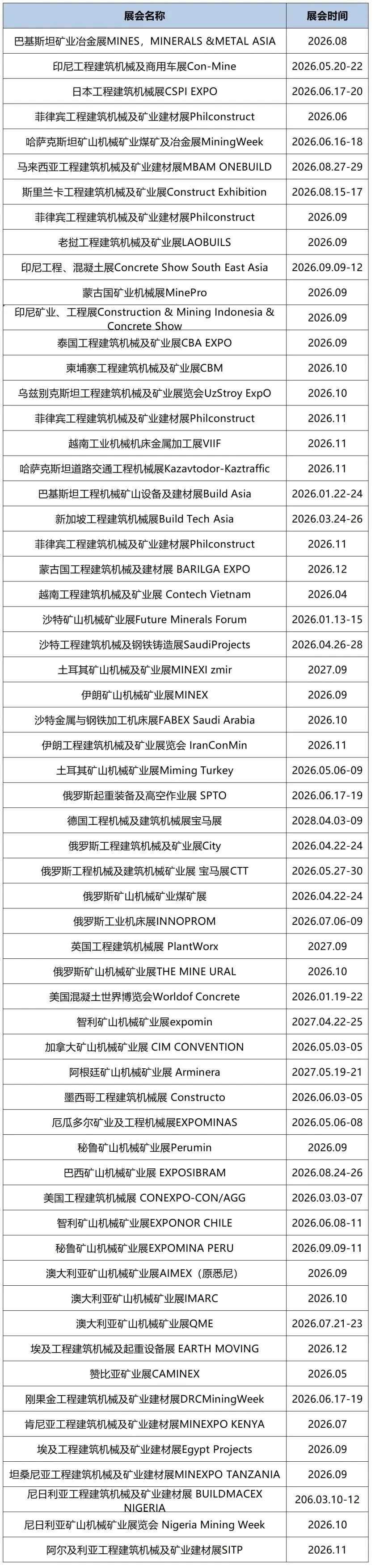需求热点:露天采矿钻机、电动矿卡、破碎筛分系统、尾矿处理设备、智能选矿机(AI 矿物识别)、环保型开采机械;矿业设备需求年增速超7%。