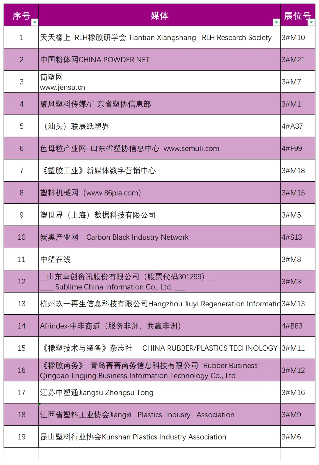 (媒体/协会和展位号)