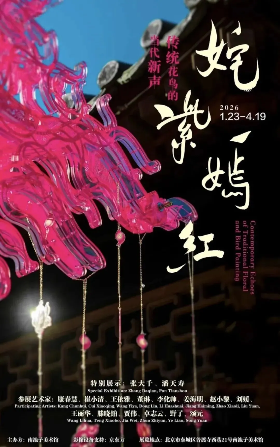 展览以张大千、潘天寿的梅、桃与荷为引,邀请十余位当代艺术家循脉立新,融绘画、雕塑、装置、影像、非遗等多元媒介,让古典花鸟在青砖黛瓦间焕发当代表达的新声。东方美学不是复刻传统,而是让经典在当下焕发新生。2026,不如来这里赴一场花鸟与古建的约会!