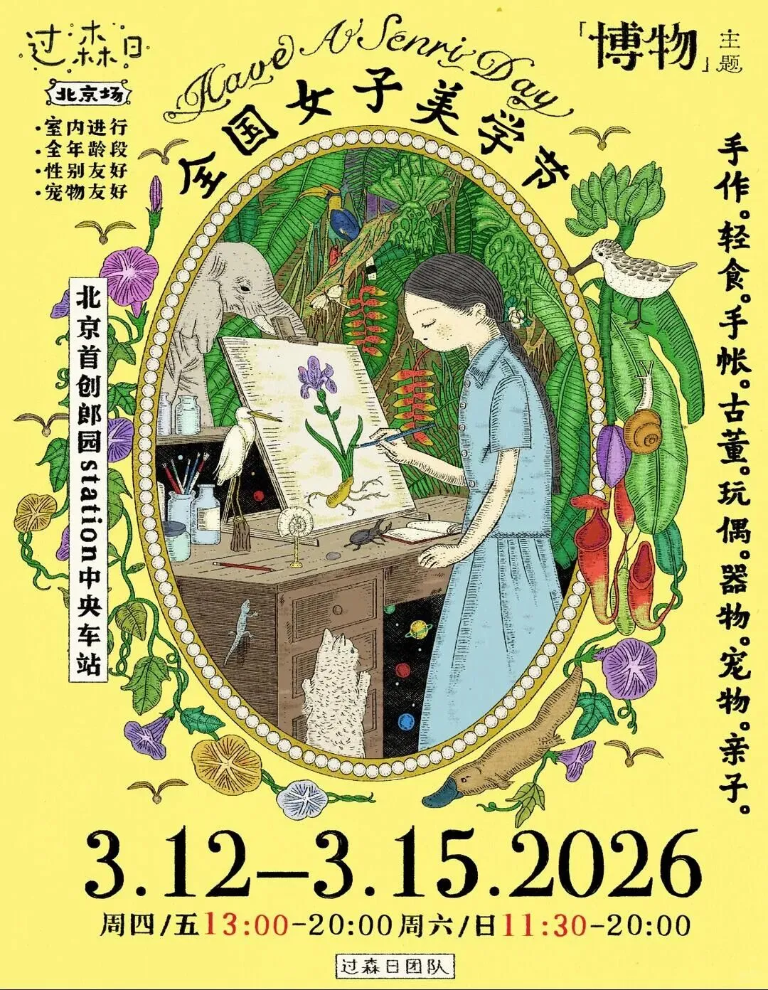 过森日蕞大一次市集要来啦!北京是全国博物馆最多的城市!这也是我们首次女子博物美学节!每一家都像一个小型博物展览!全年龄!全风格!不分性别!并且有美食区、音乐会、 分享会。宠物及亲子均友好!
