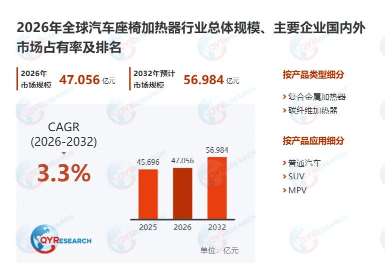 若您希望进一步了解该行业全面深度分析,可参考QYResearch最新发布的《2026年全球汽车座椅加热器行业总体规模、主要企业国内外市场占有率及排名》研究报告。