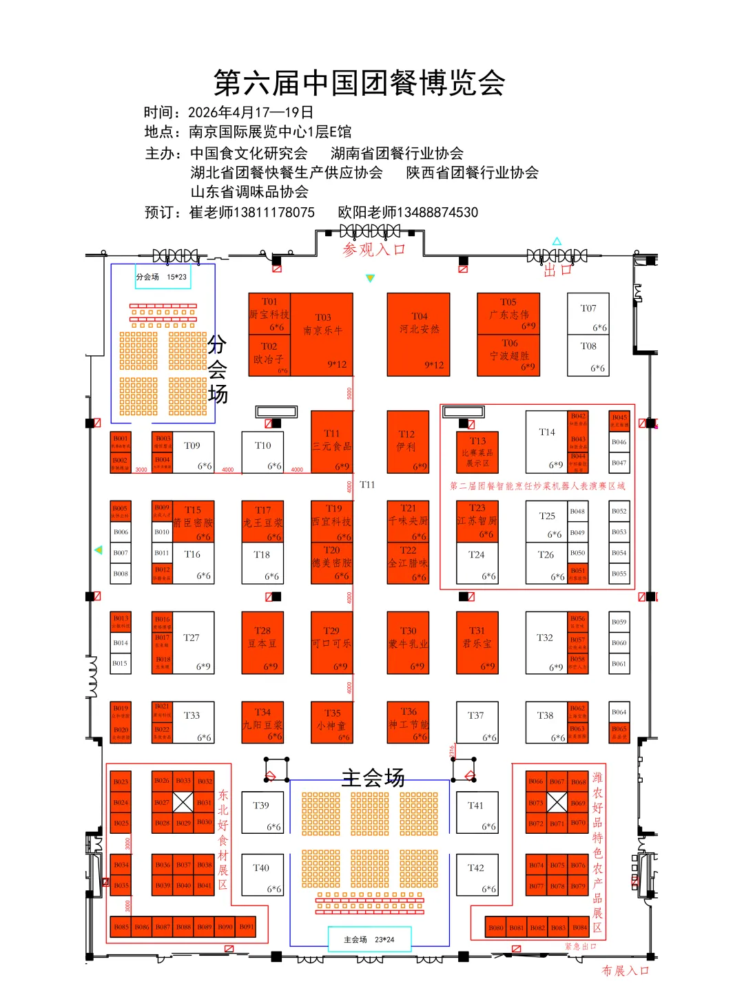 第六届展位图已发布,红色区域为已预订,预订请联系欧阳双保老师 13488874530。