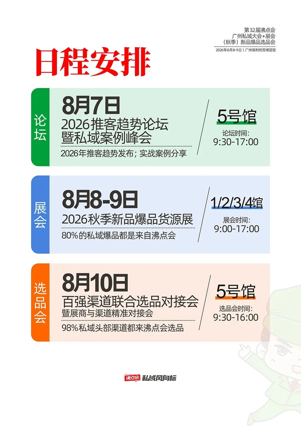 ⏰8月8-8日:2026私域秋季新品爆品展,抢占金九银十;1000+参展商,10000+新品爆品同台展示,98%私域头部渠道现场选品。