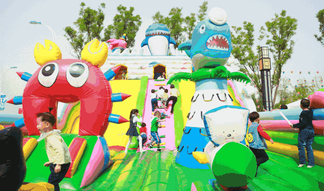 小朋友在超梦幻的充气城堡里