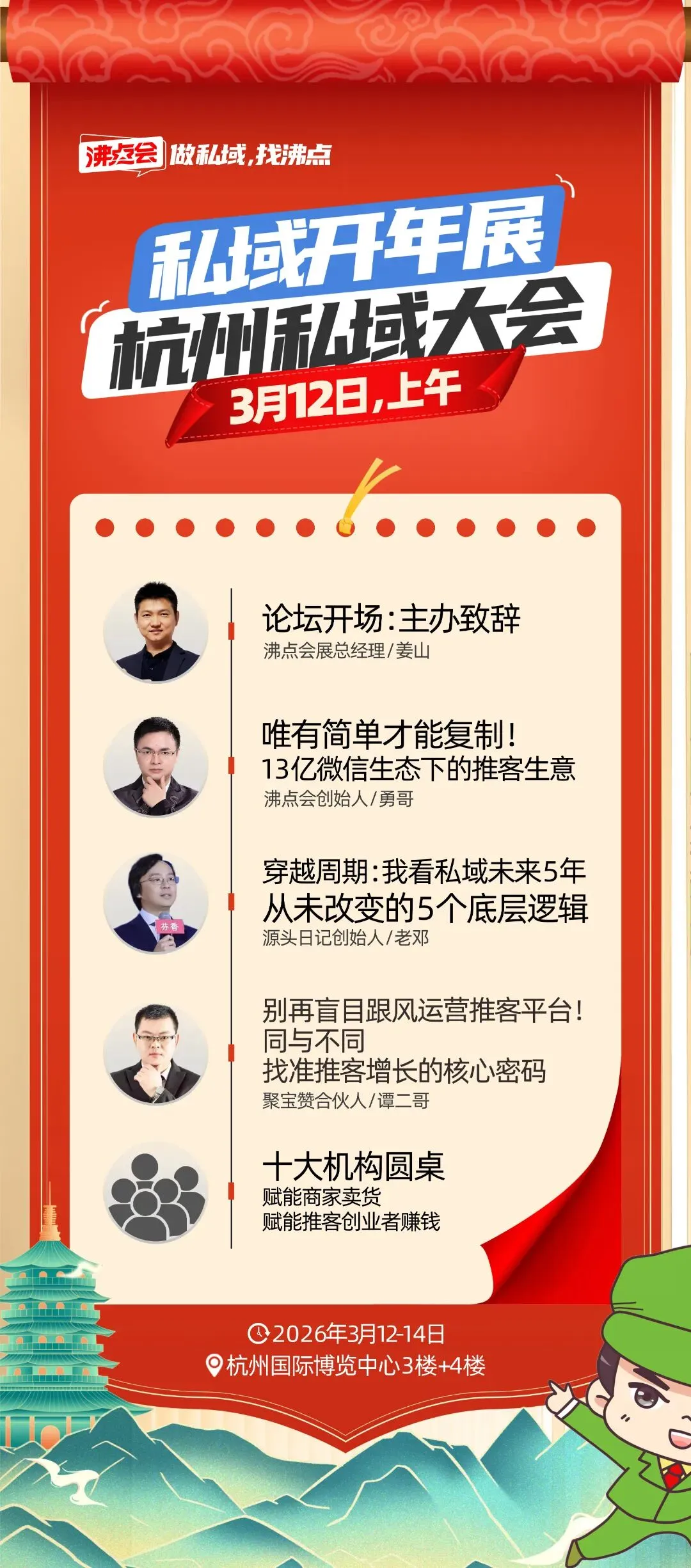 上午聚焦推客赛道新趋势,行业大咖现场解析私域新生态。下午聚焦私域实战案例,邀请在私域做出结果的嘉宾分享私域增长实操经验,助你弯道超车,建议全天参与学习。
