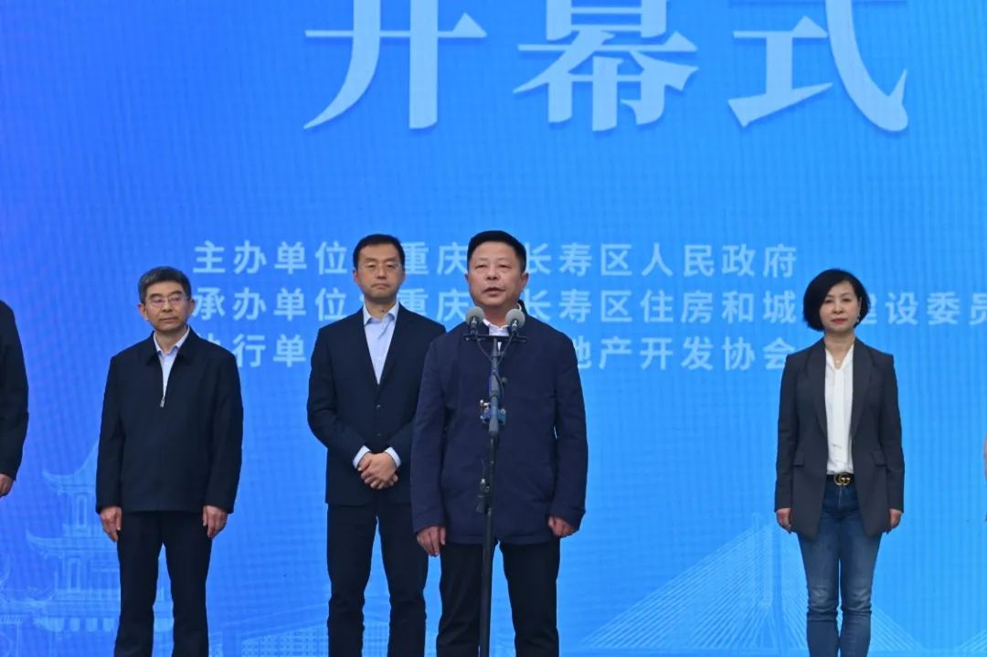 长寿区副区长刘朝煜在开幕式致辞中表示长寿区深入贯彻新发展理念,主动融入新发展格局,围绕建设国际化、绿色化、智能化、人文化中国长寿城的宏伟愿景,实施长寿区第十四次党委会提出的“两地一城”为建设目标,以3113项目攻坚行动计划为路径,长寿区以昂扬的斗志、创新姿态、凝心聚力推动高质量发展。本届房交会的举办旨在优化房地产市场营商环境,提振市场消费信心,支持刚性和改善性住房需求。希望广大群众能在本届房交会上买到称心如意的住房,一起共享“两地一城”的长寿红利,一起探索生命科学的长寿秘诀,奋力书写新时代新征程新重庆长寿华章。