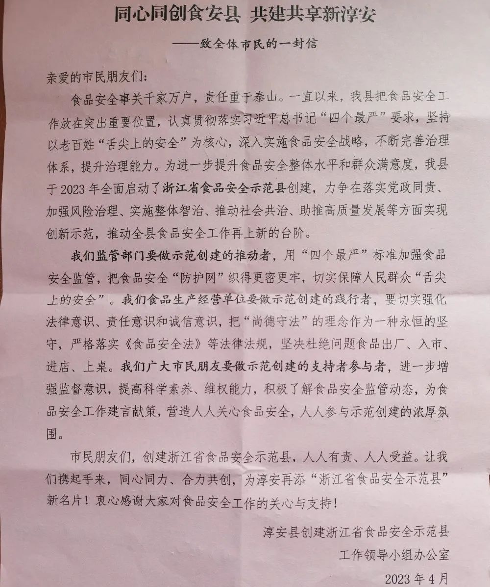 会上,县市监局党委副书记、副局长江灵平强调:今年是浙江省食品安全示范县创建关键之年,同时淳安作为杭州唯一一个在非市区建设亚运分村的县城,更要加强加实加细食品安全源头监管,防范化解重大风险隐患。并围绕“亚运”和“省创”两个重点提出三点要求:一是强化意识,增强食品安全工作的紧迫感和责任感。二是聚焦聚力,严格落实企业食品安全主体责任。三是坚持导向,处罚不是目的,要寓监管于服务,以服务促监管。