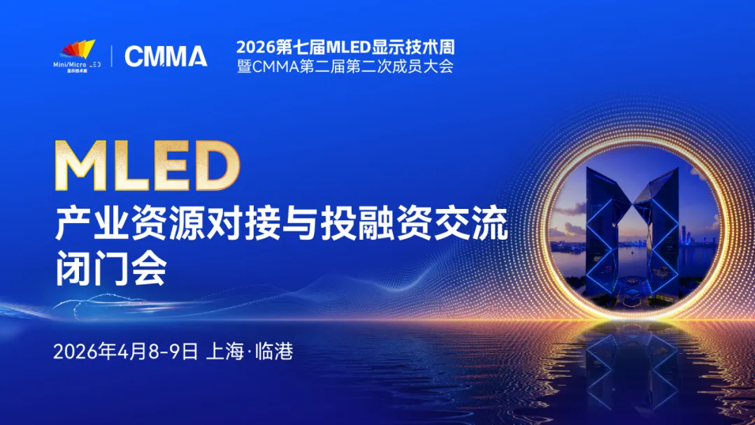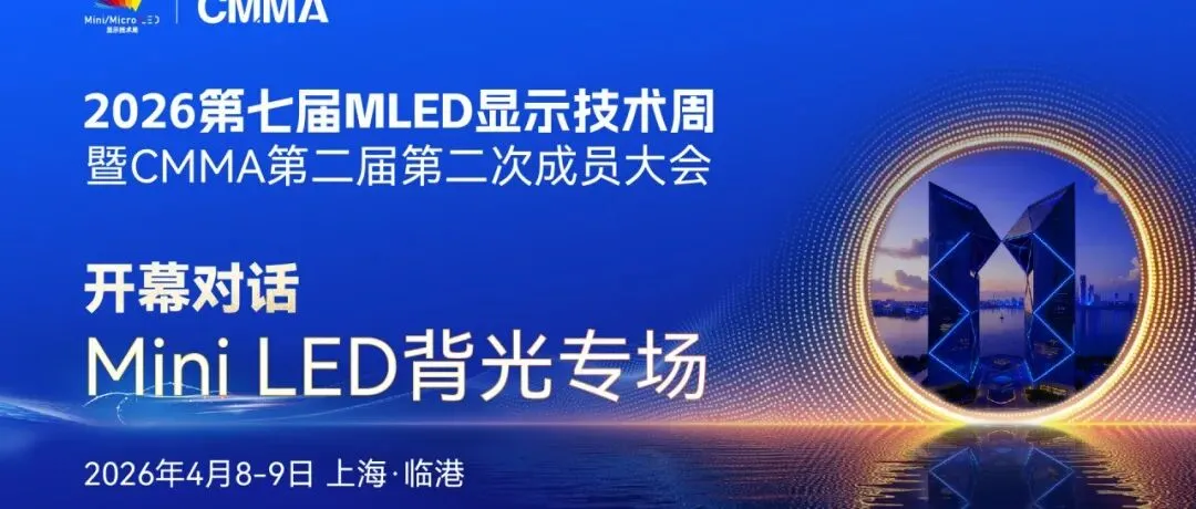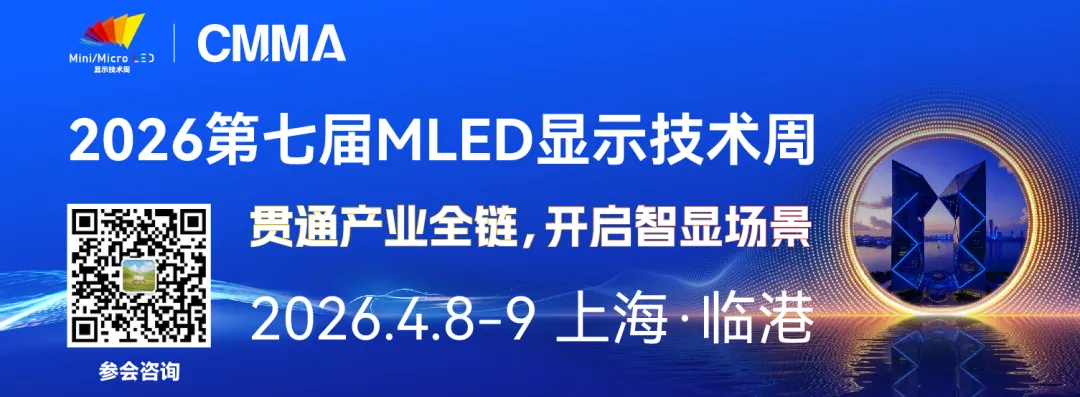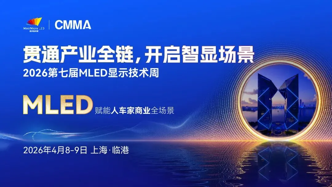2026第七届MLED显示技术周定于2026年4月8-9日在上海临港举办,大会以“贯通产业全链,开启智显场景”为主题,为期两天,涵盖CMMA成员大会和多场CMMA工作组闭门研讨会、行业白皮书启动仪式、二十余场大会主题演讲、四场行业深度对话及优秀产业链企业参观等核心板块,旨在连接前沿技术与产业价值,是推动MLED产业迈向规模化、商业化的重要风向标活动,为未来五年的全球显示产业发展指引清晰路径。