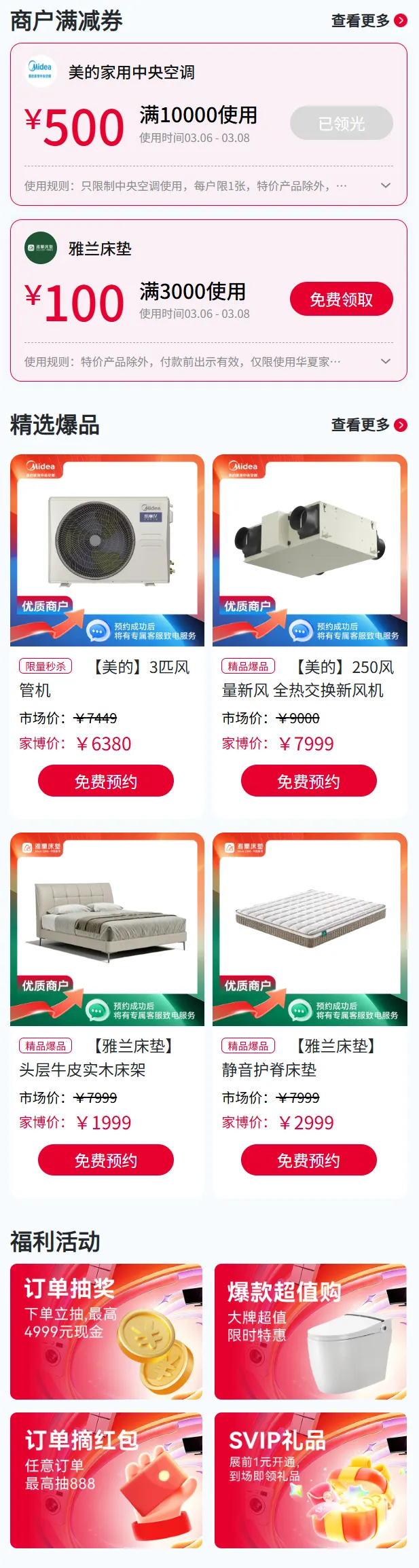 线上看线下买:不出家门即可提前锁定品质低价好物,线上线下参观结合,让家居采购省心便捷到极致