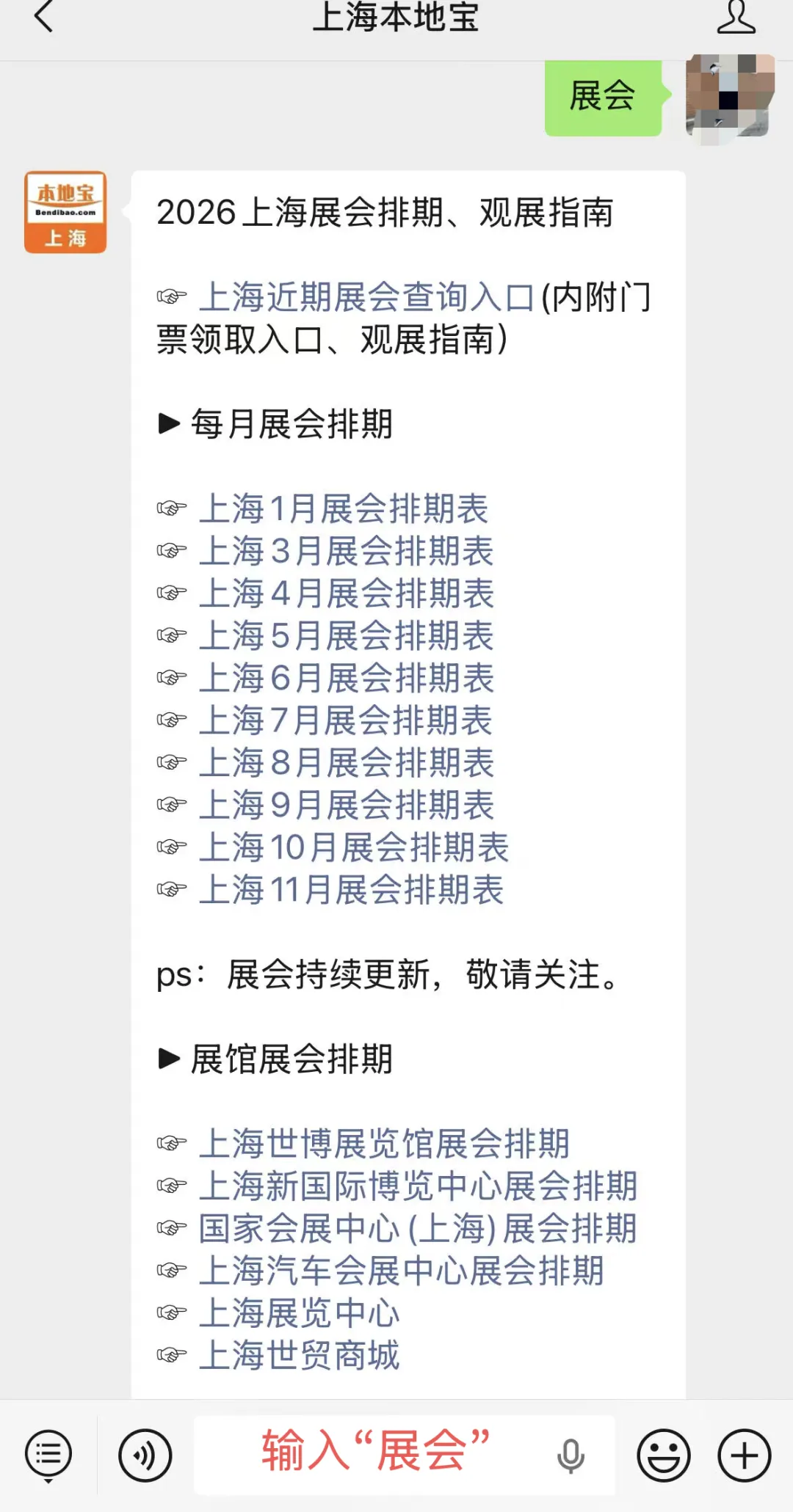 扫描下方二维码,关注上海本地宝,后台对话框私信回复【展会】,查看上海2026最新每月展会排期表、近期展会查询入口等。