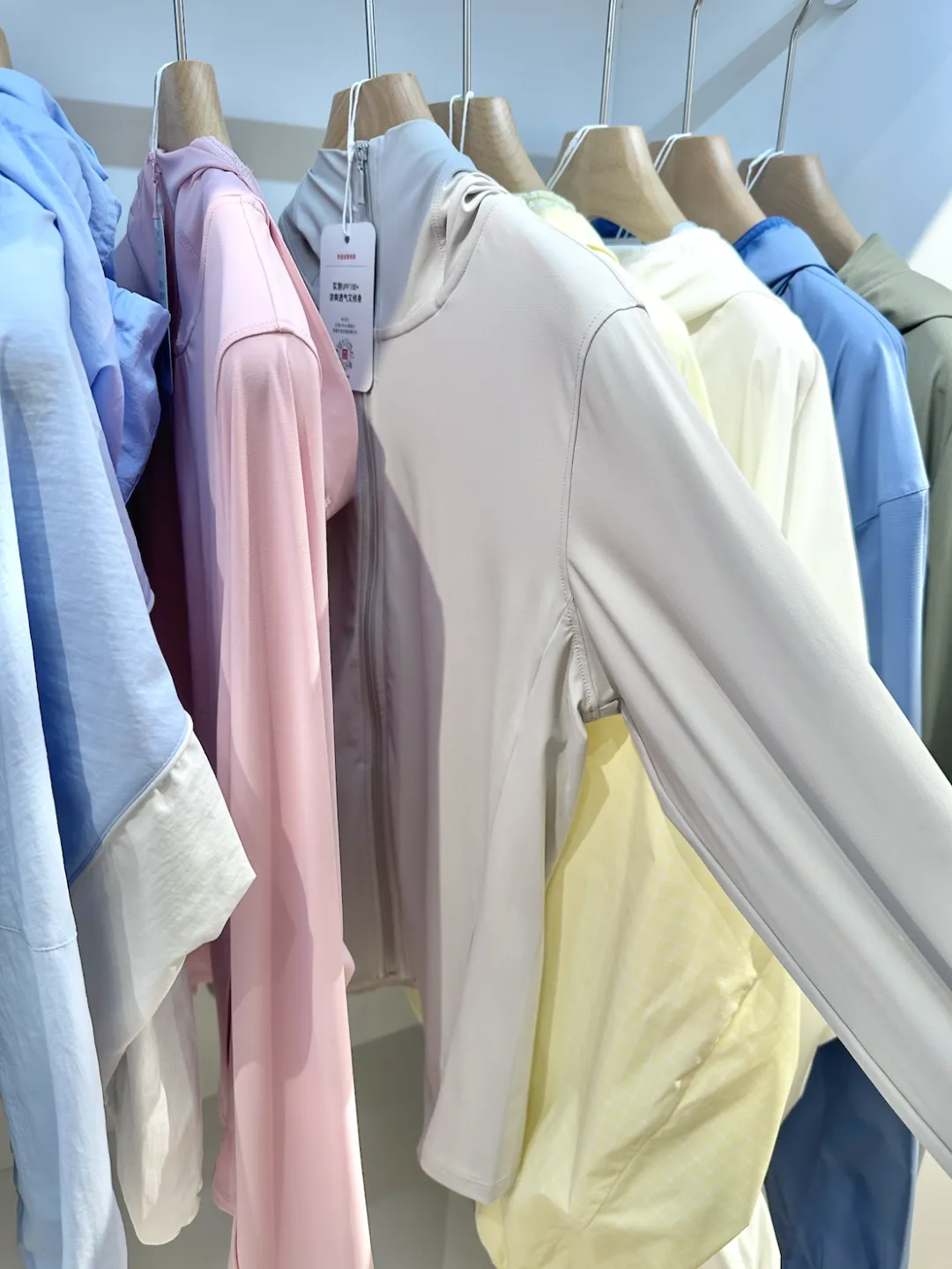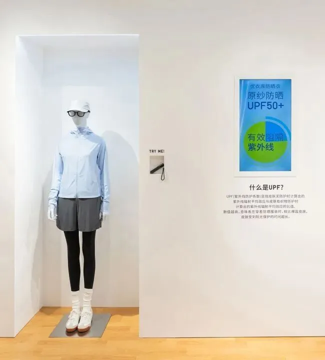 面料用的是 AIRism 科技面料,强调升级经编、质感更挺括、上身瞬间的凉爽感,同时把吸汗速干和透气性一起放进来。现场摸到实物的触感,会更容易理解它要解决的就是春夏最典型的那种矛盾:想要轻薄好穿,但又不想热、不想晒、也不想被束缚。