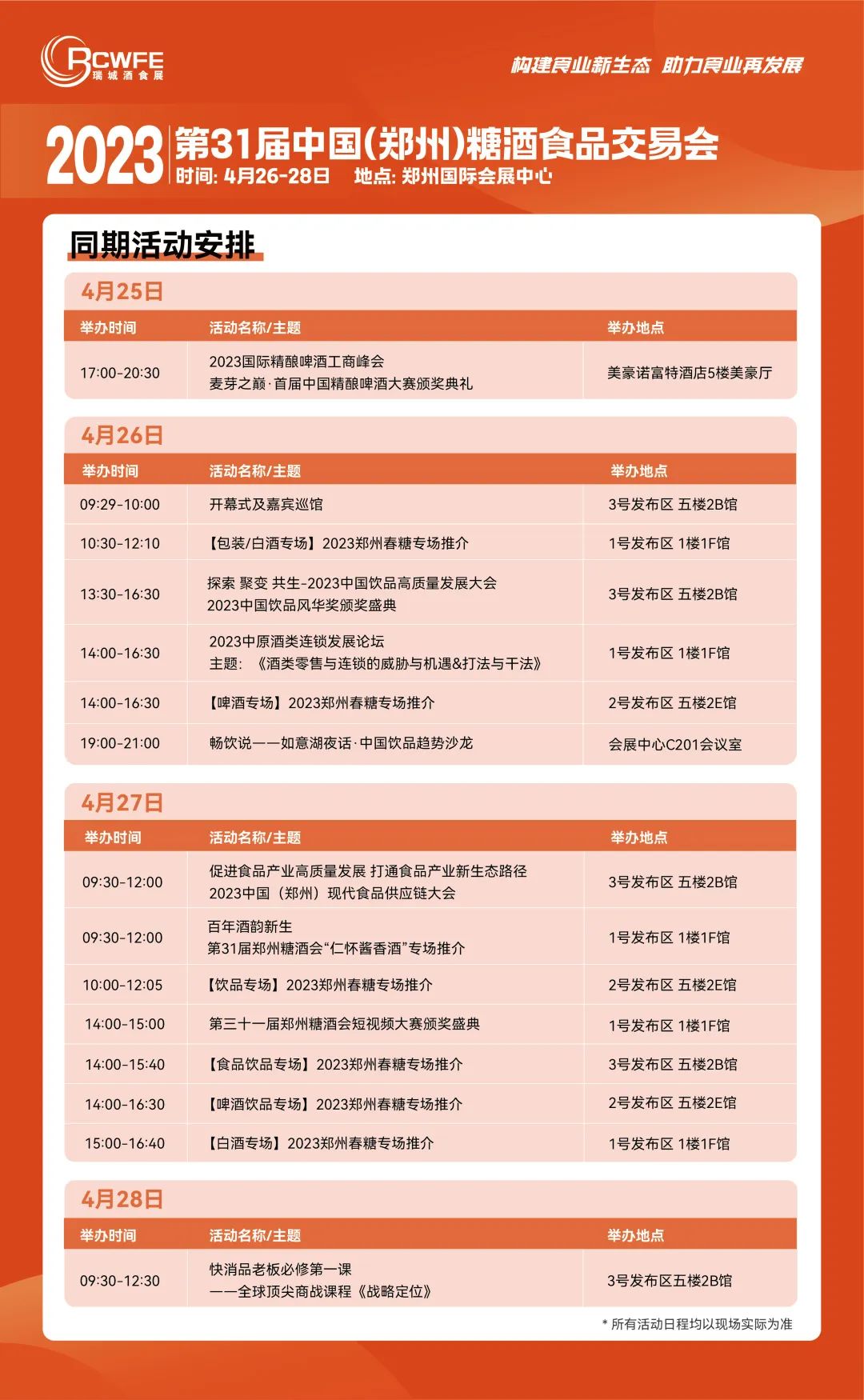 第31届郑州糖酒会4月26日开幕 【同期活动日程表】出炉!